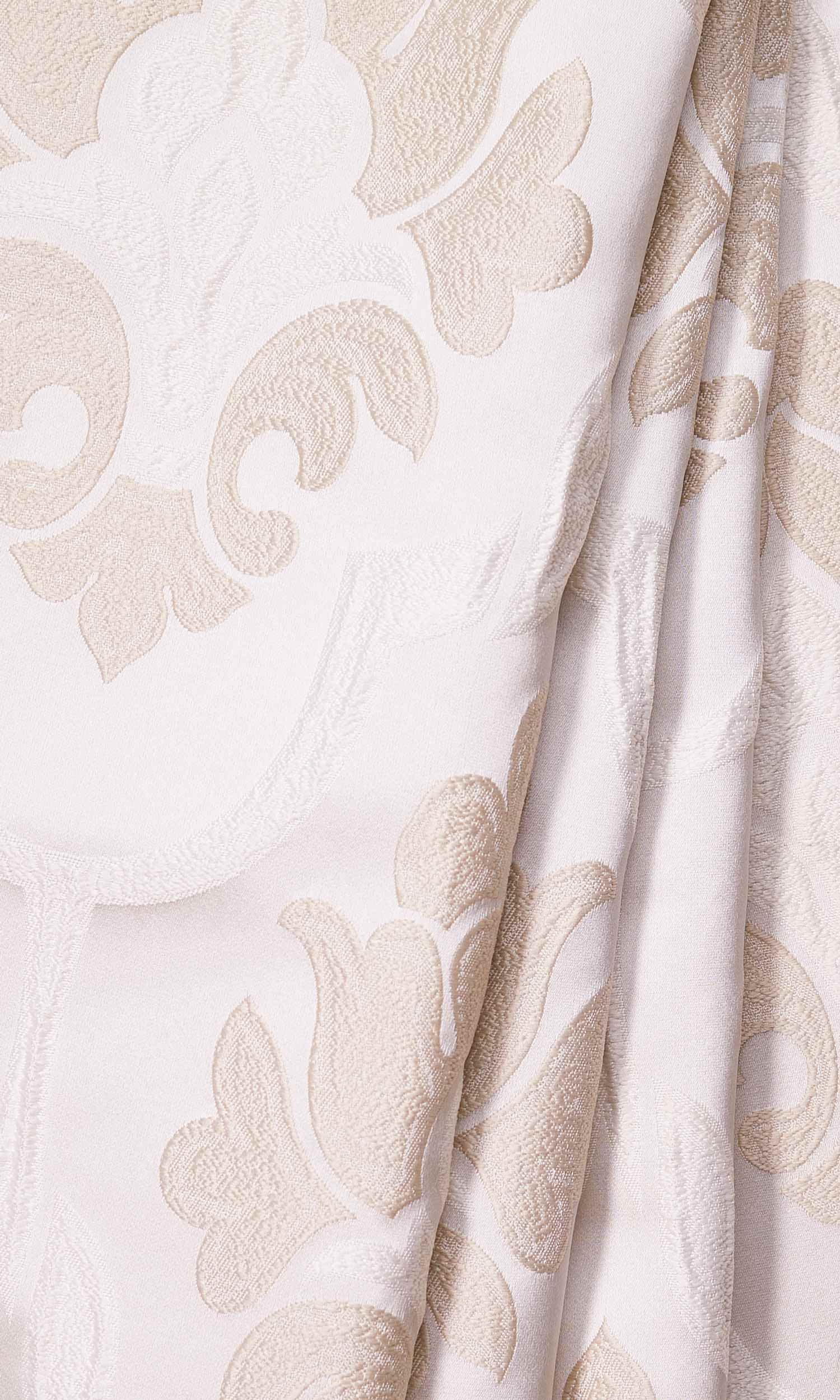 If you like a dash of old world charm with contemporary sensibilities in your room furnishings, check out this self-patterned damask in beige and cream. Its elaborate weave is all dreamy swirls and whimsical trellises. Very aristocratic, very luxurious!