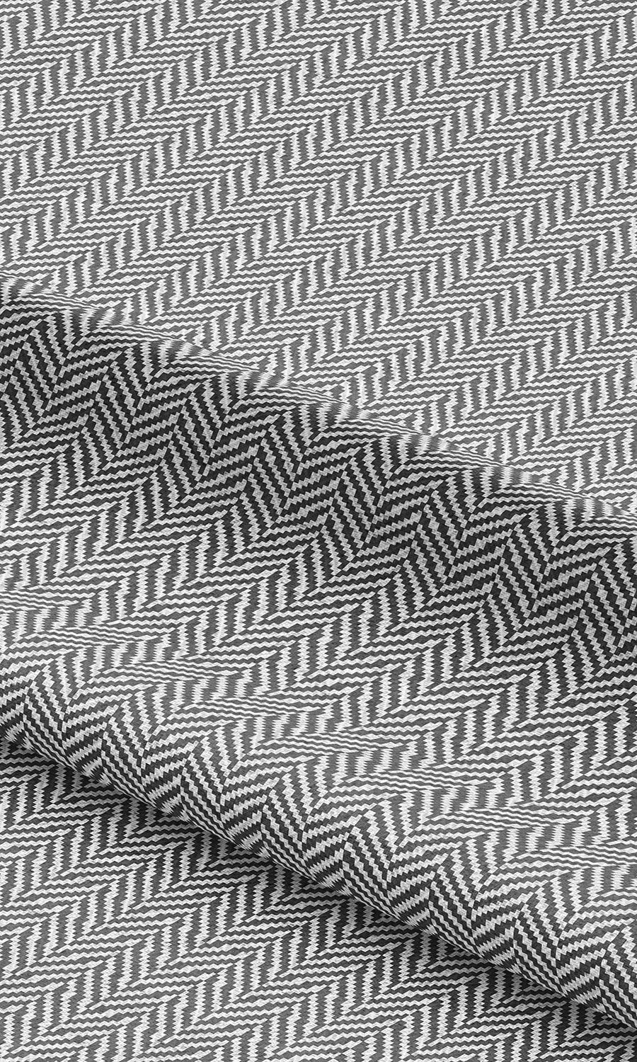 • Its small-scale herringbone print that offers the dynamism of pattern with the lightness of subtle texture