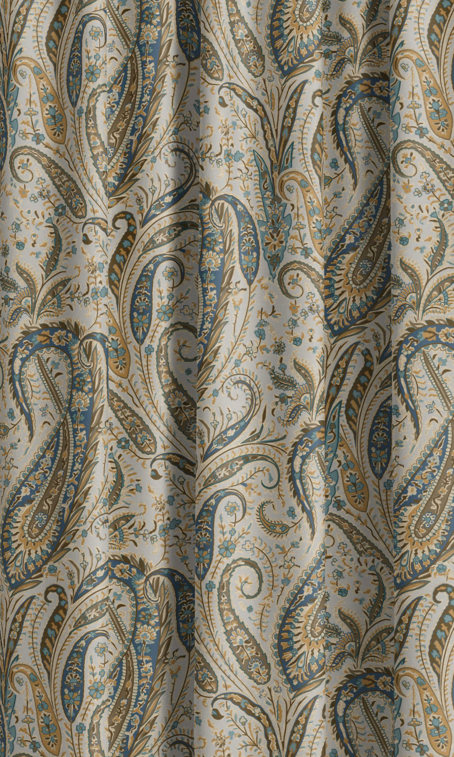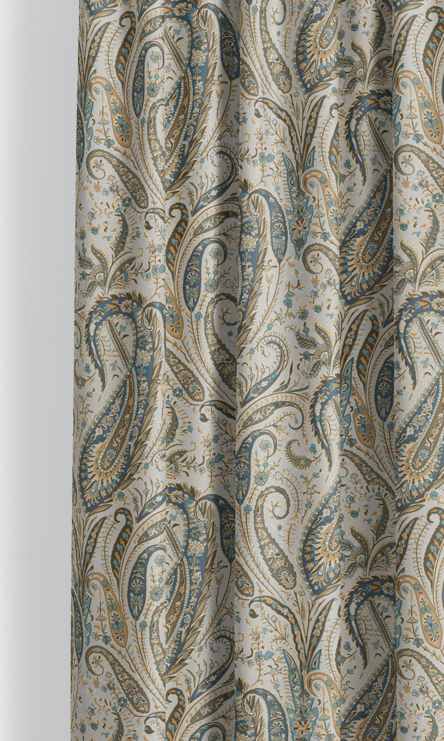 - Pinch & puddle the drapes: Complement the classical elegance of Bristlecone velvet paisley floral curtains with the tailored headers of pinch pleat styles. Their embellished pleats mirror the gracefully swirling motifs, enhancing their luxurious sheen with movement and depth. Puddle them for an extravagant touch, and finish the look with ornate hardware to elevate the sense of grandeur.