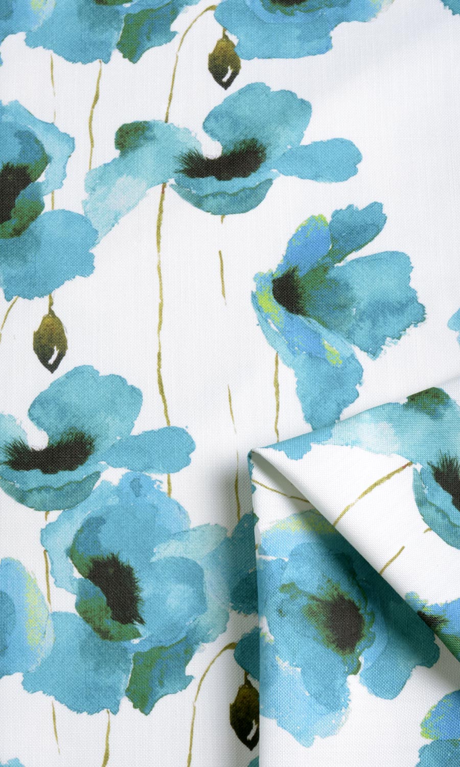 Grand watercolor sketches of poppies on slender stems - a rare contemporary take on a traditional floral theme! The spirited color scheme of white and turquoise blue, and the magnified scaling make window treatments in this fabric an out-and-out choice for spacious rooms! ‘Callan’ presents a clever alternative to floral wallpapers if you don’t want the garden theme centerstage all the time.
