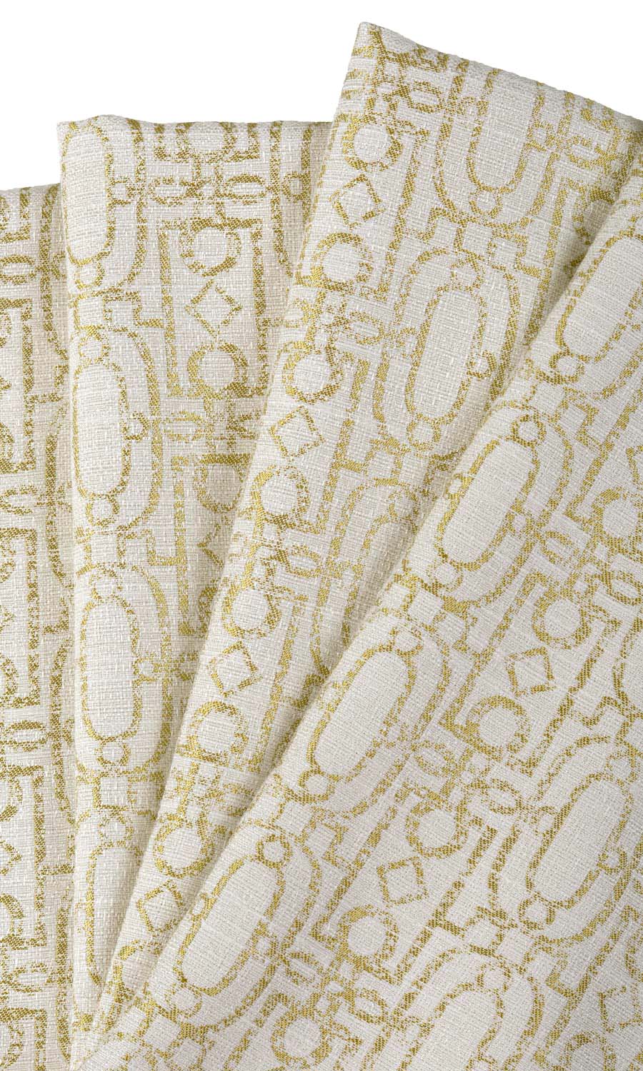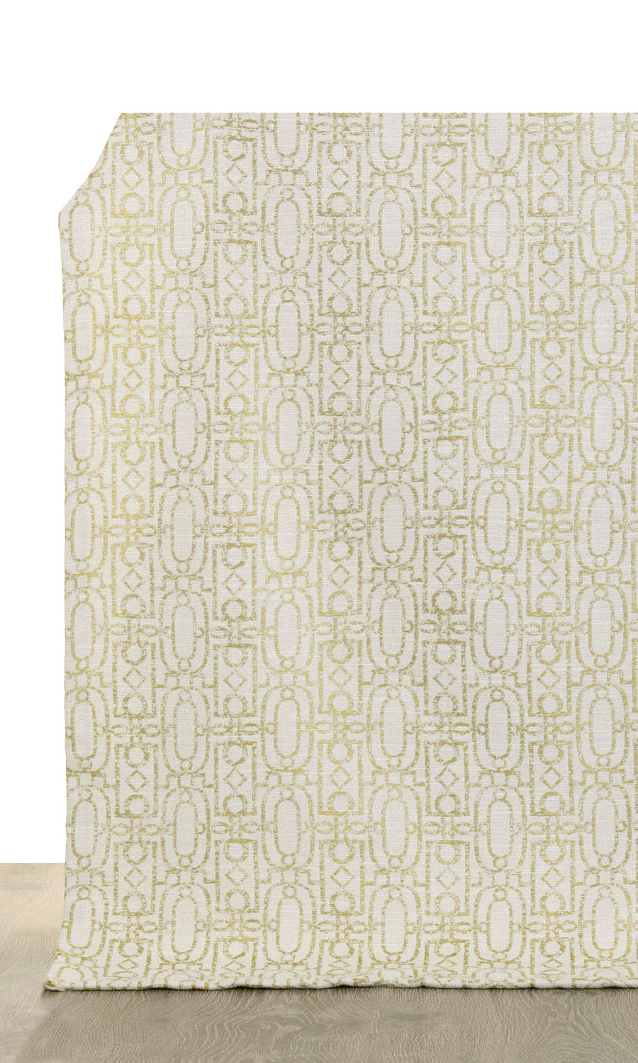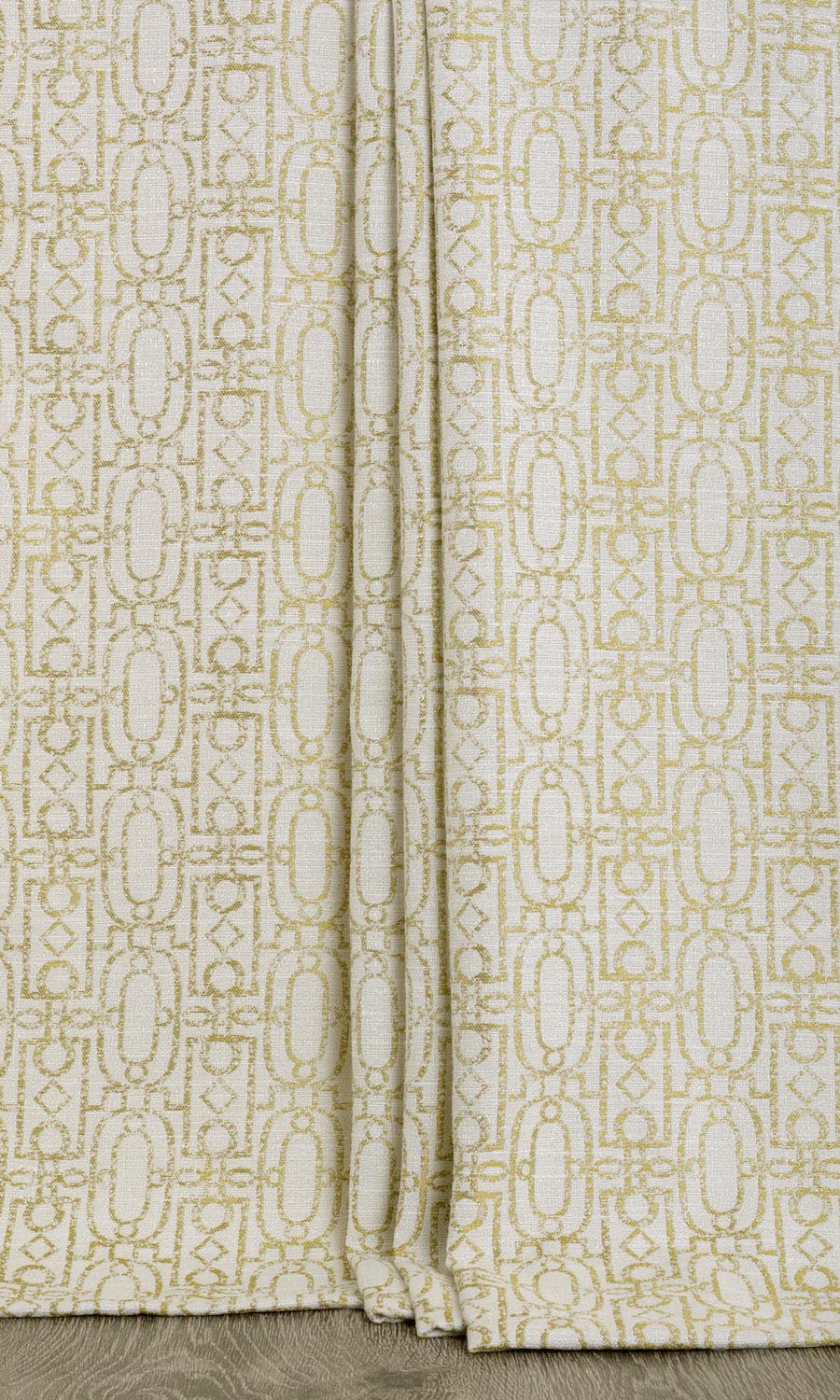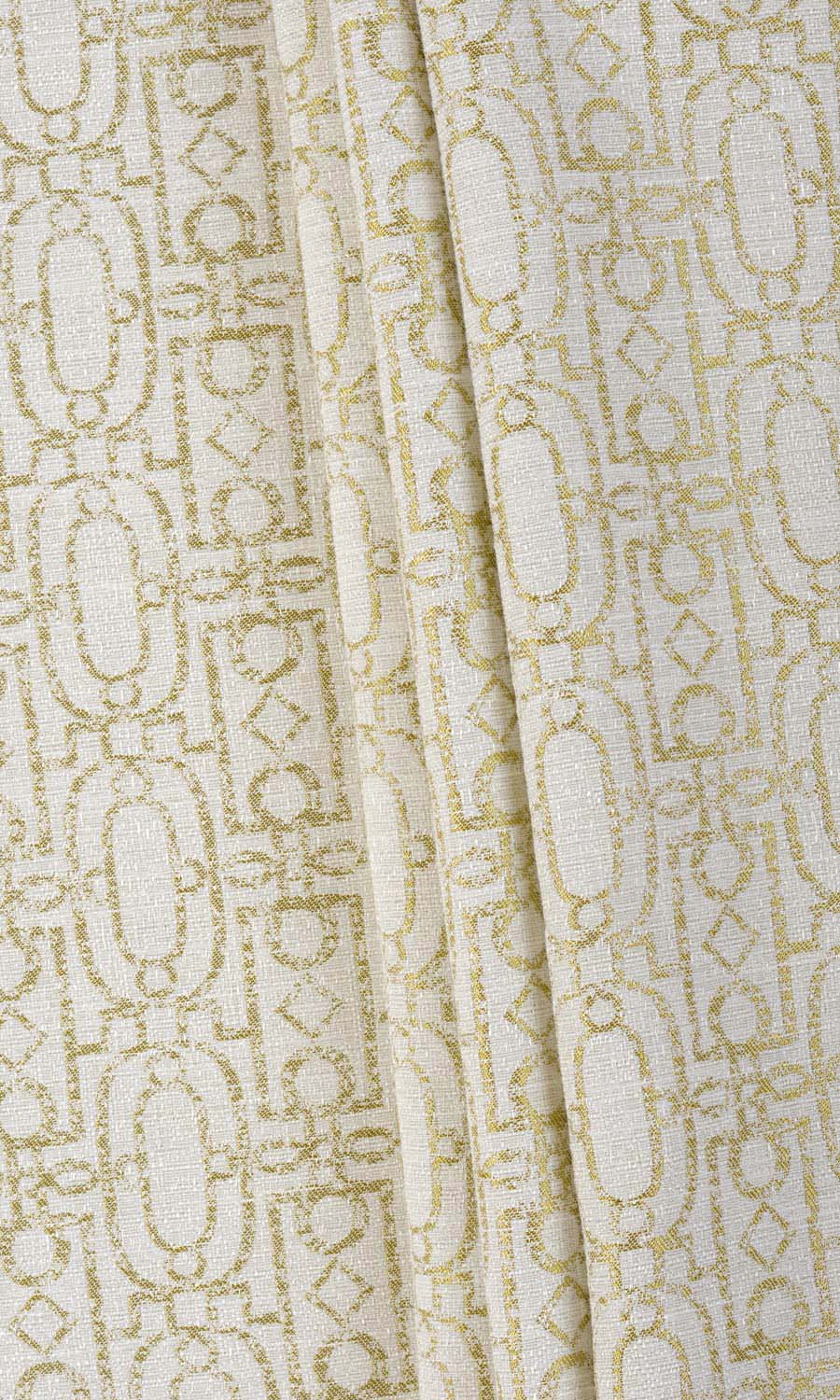 If you really wish to elevate your decor, we recommend Camelot as the drapery fabric to pick. Its texturally rich off-white surface is patterned edge to edge with a raised geometric pattern in green. The tribal art inspired medley of geometric shapes is delightful and different from the usual, as is the simple no-fuss color palette.