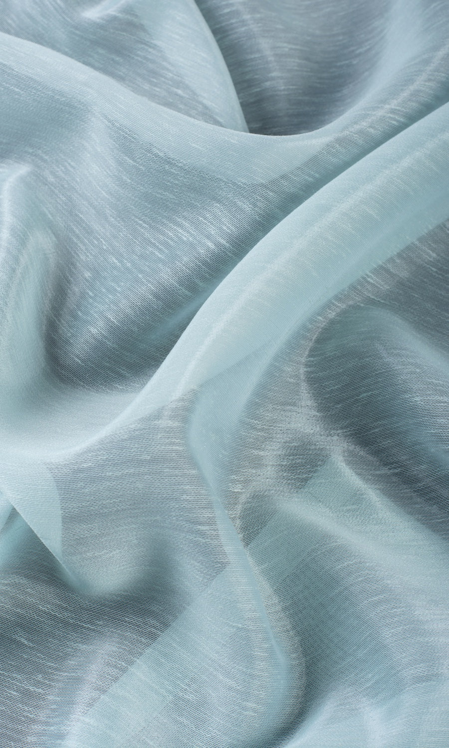 A gossamer veil spun with ethereal threads, this lovely sheer spells tenderness, serenity and grace in a cerulean whisper. Its dainty blue with lustrous white accents is the epitome of soft elegance. Make a bedroom dreamy and coastal decor complete with this charming blue fabric.