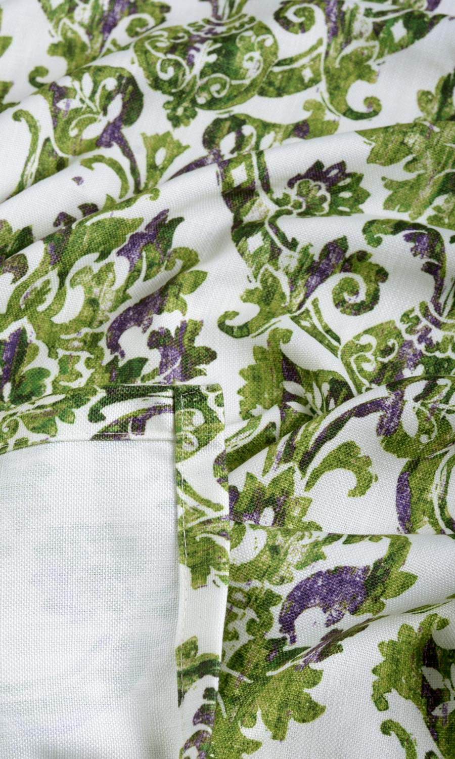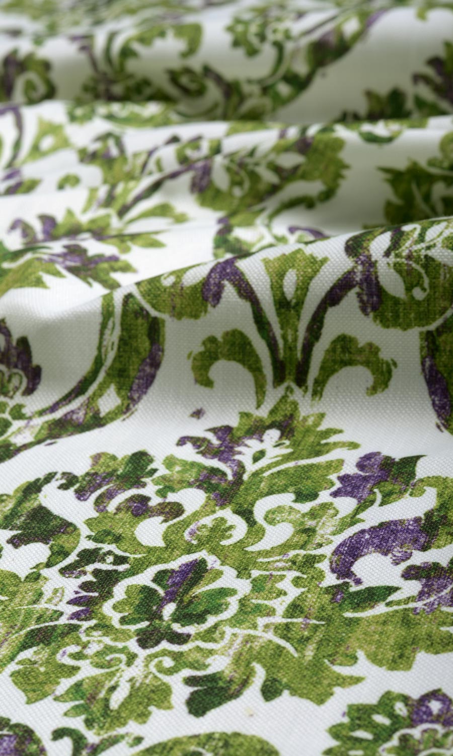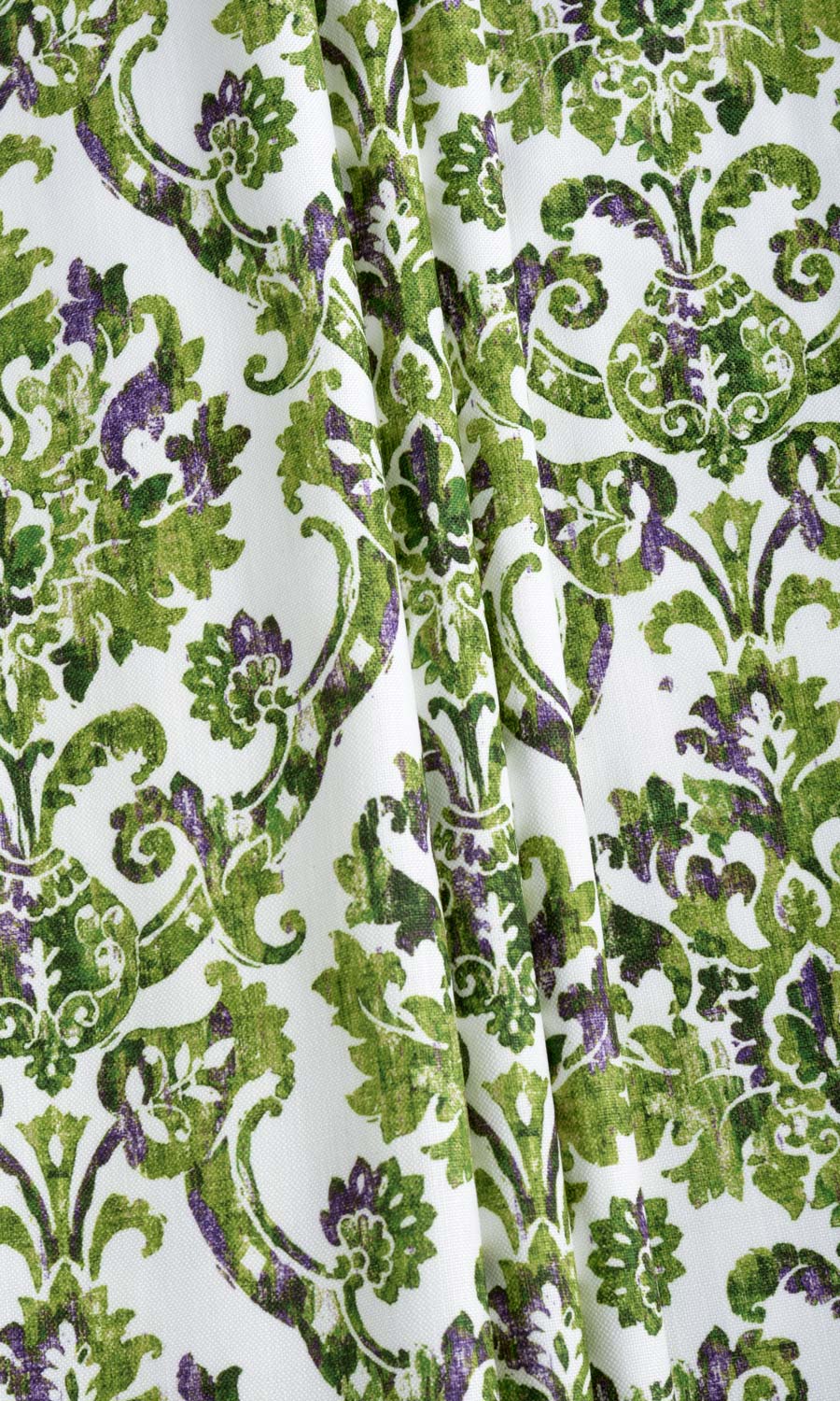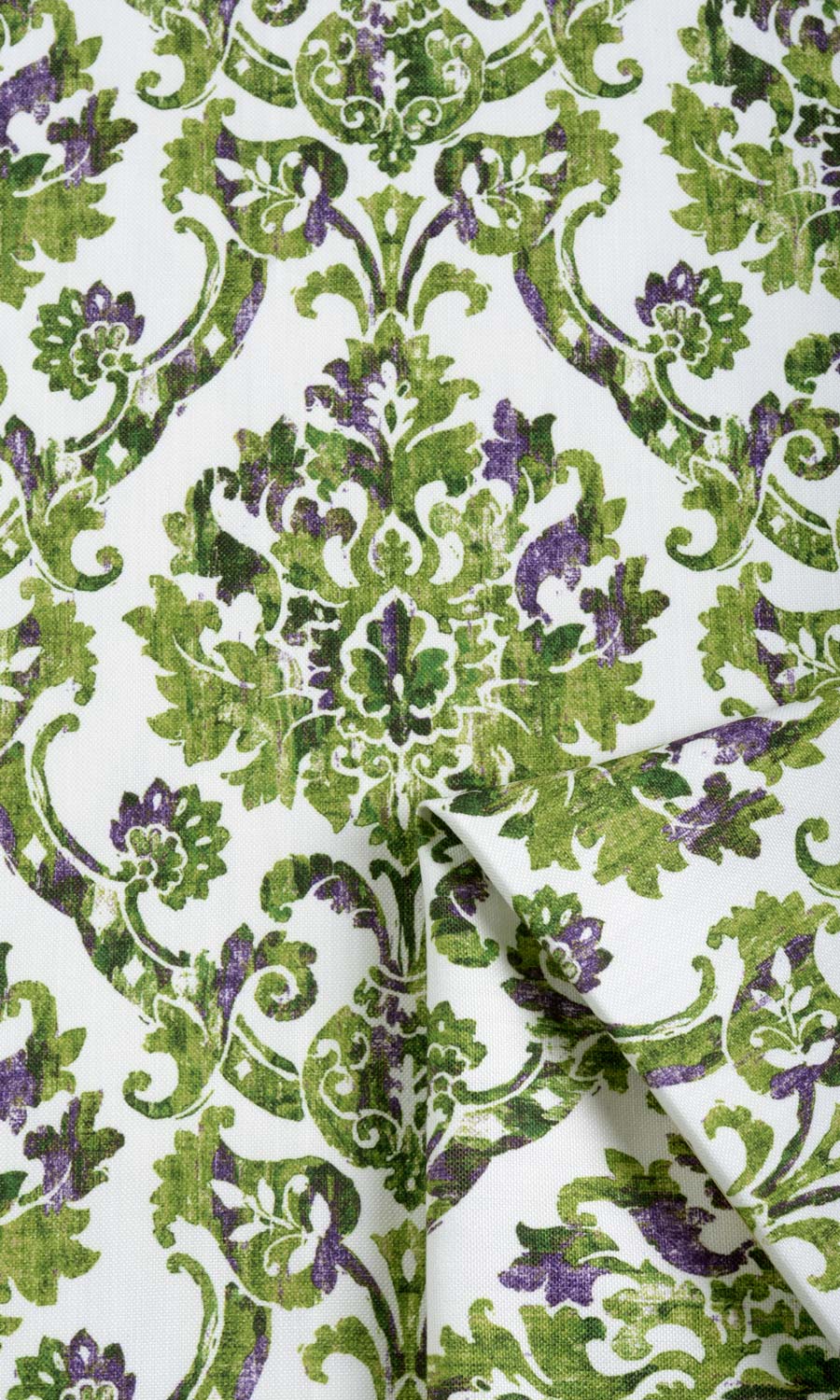 For elegant window treatments that must also make a strong visual impact, this immaculate piece of luxe beauty is on offer. Bearing the traditional and much-revered damask motif in olive green and eggplant purple on a white backdrop, this fabric is best described as an enchanting beauty. Drapes and roman shades in this bold patterned fabric are ideal for traditionally-styled large rooms and open-plan houses.