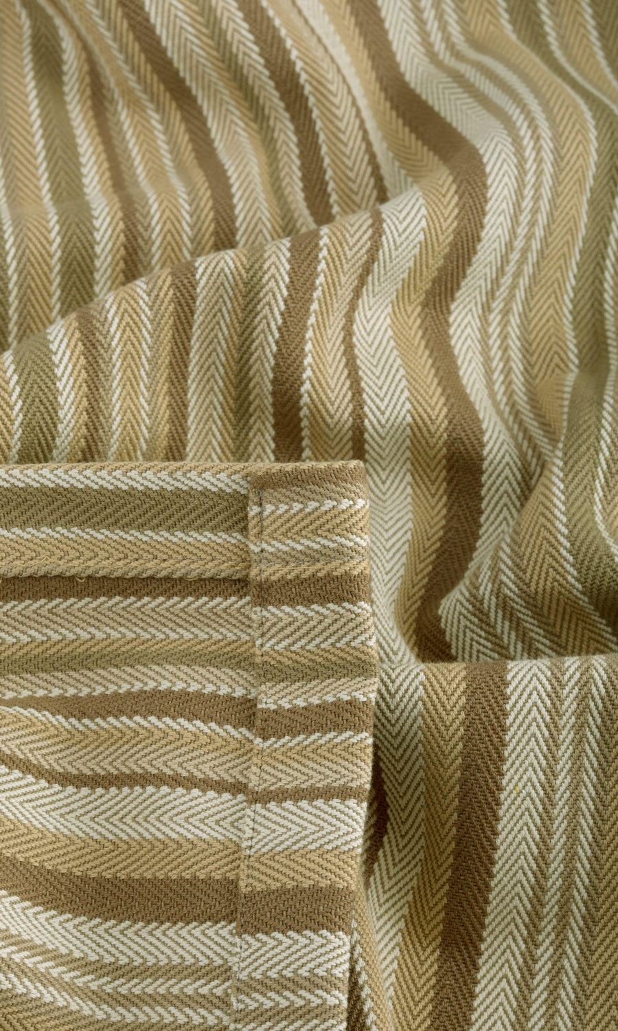 Part of our swoon-worthy cotton collection, Caramel Tan features a vertical woven stripe of neutrals. The understated striped pattern on ivory and beige is a simple yet effective design that works in many decor settings. Caramel Tan is rich with textural interest and a definitively modern take on cotton, so cozy and full of flavor. This medium weight cotton falls beautifully and never fails to impress - no matter what the heading style - from the fullness of pinch pleats to the minimalist look of an eyelet heading.