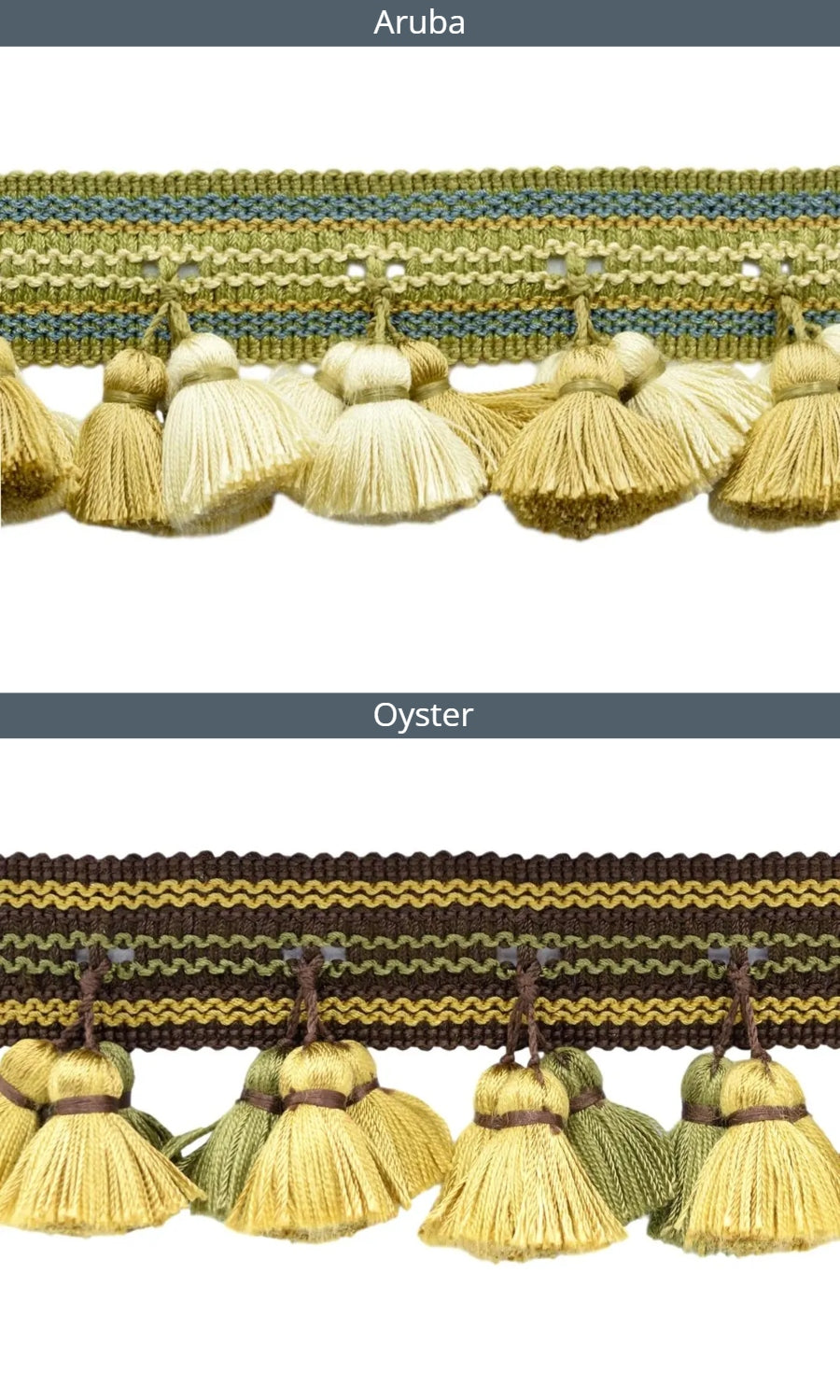 This ornate cascading tassel trim measures 2.5 inches (63mm) from top to bottom, and is available in 3 colorways.