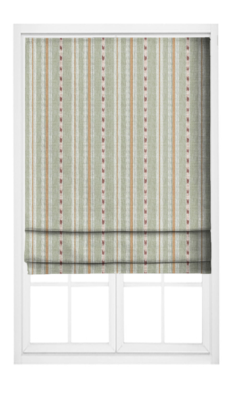 'Castle Tower' Fabric by the Yard (Soft Green/ Orange/ Brick Red)
