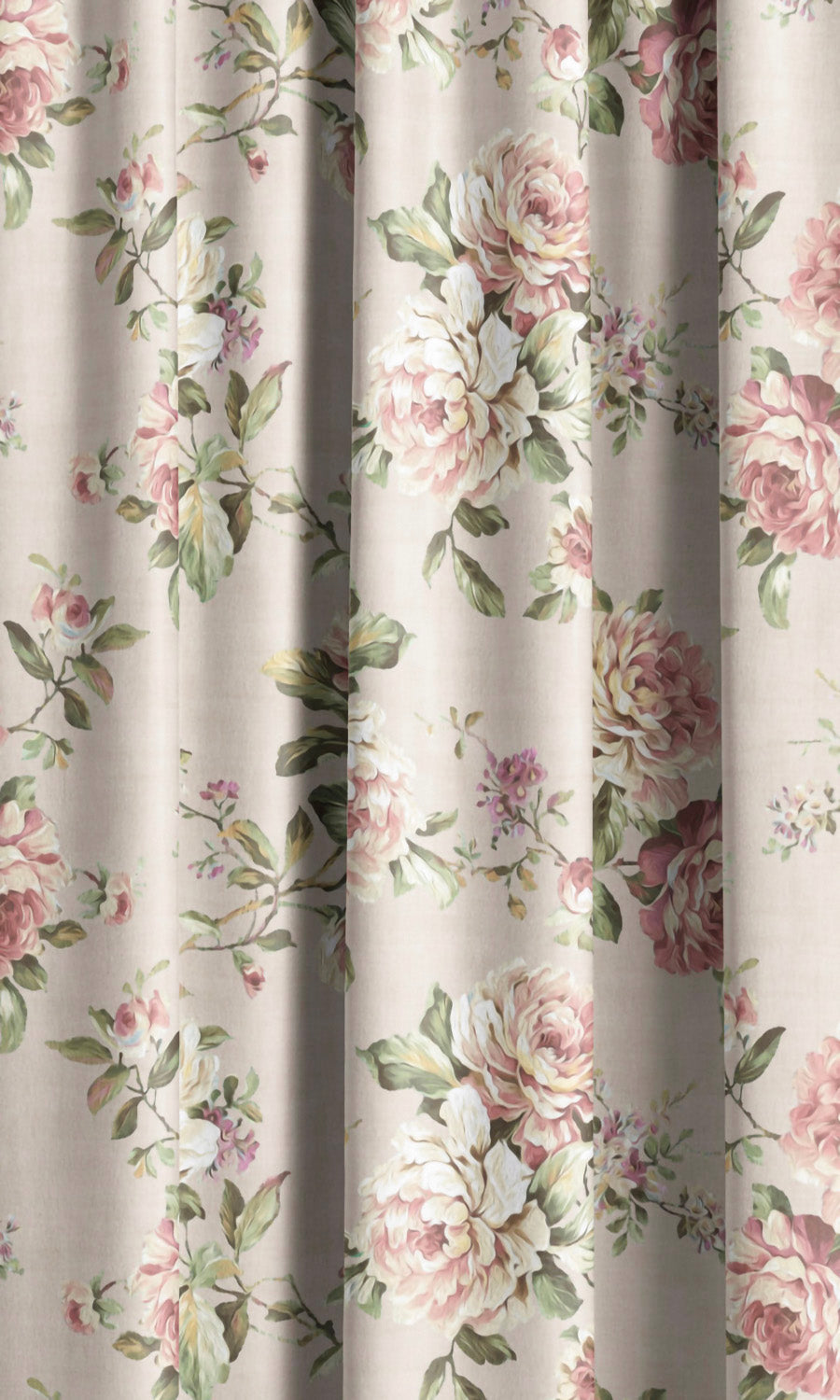 - Select pinch pleat headers: Style these English floral velvet curtains in one of the pinch pleat styles. Their ornate headers, rhythmic pleats, and sumptuous drape heighten the drapery's extravagance and tender elegance.