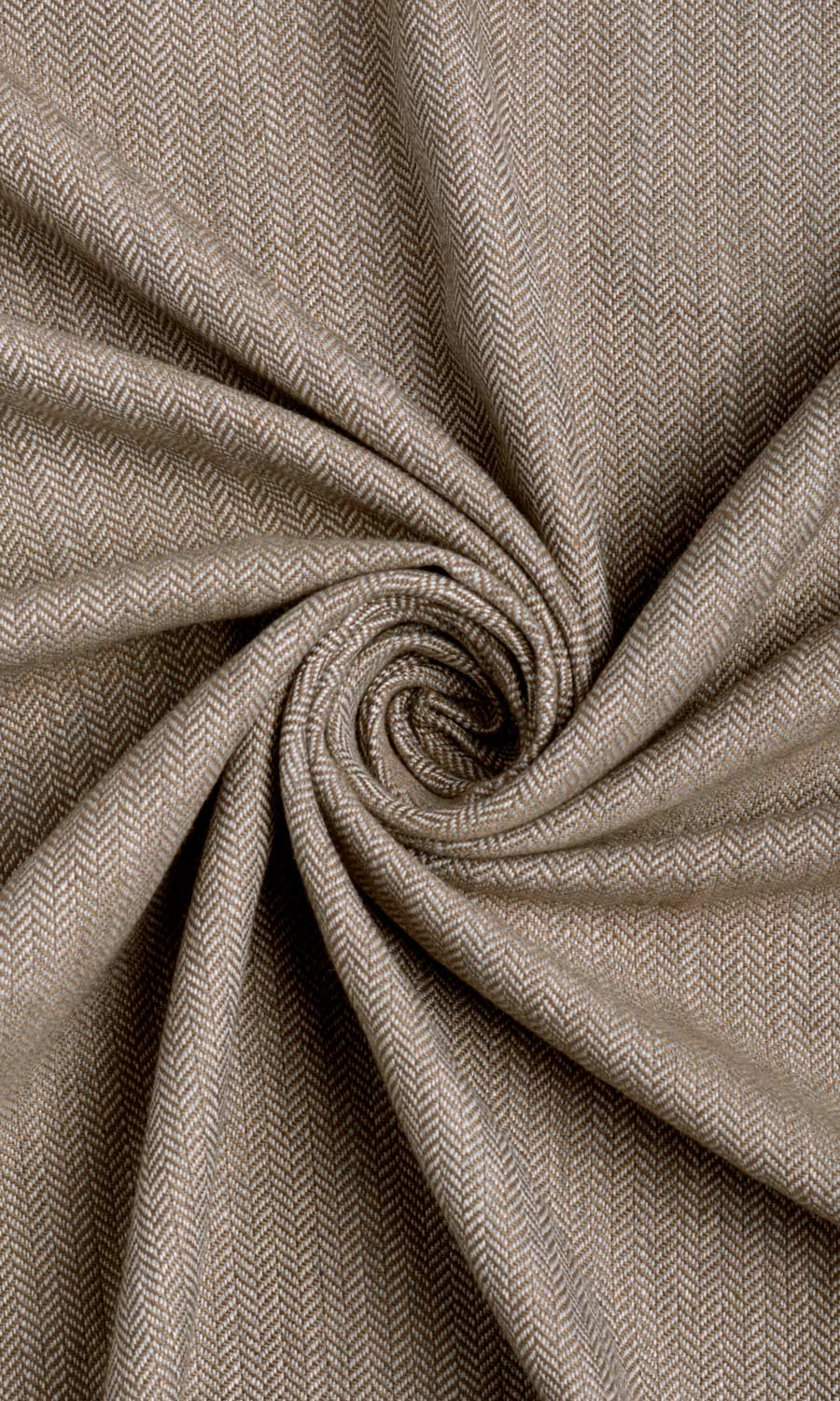 Classic, soft-spoken, and delectable, window treatments in this tawny brown fabric offer the neutrality that lets bold colored elements make their statement. A touch of glamor and old-world charm is rendered by the timeless two-toned herringbone weave that makes for its high-textured finish. Our stylists especially recommend using this fabric in styles that employ a visually alluring structure such as pinch pleats drapes, relaxed shades, and front-slatted shades.