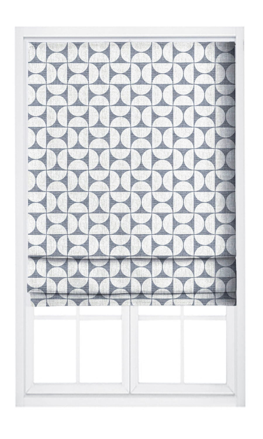 - Add to a nursery/kids' room: Adorn your kids' spaces with Chain Reaction geometric print roman shades that add a playful moment with their neatly arrayed semi-circles. And you can trust them to last through the years, outliving the fleeting tastes of a growing mind, unlike kiddie patterns and thematic designs.
