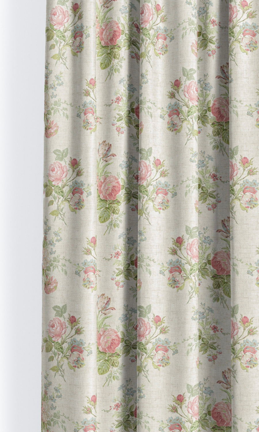 - Its spray of floral posies carrying the enchanting romance of lush English gardens