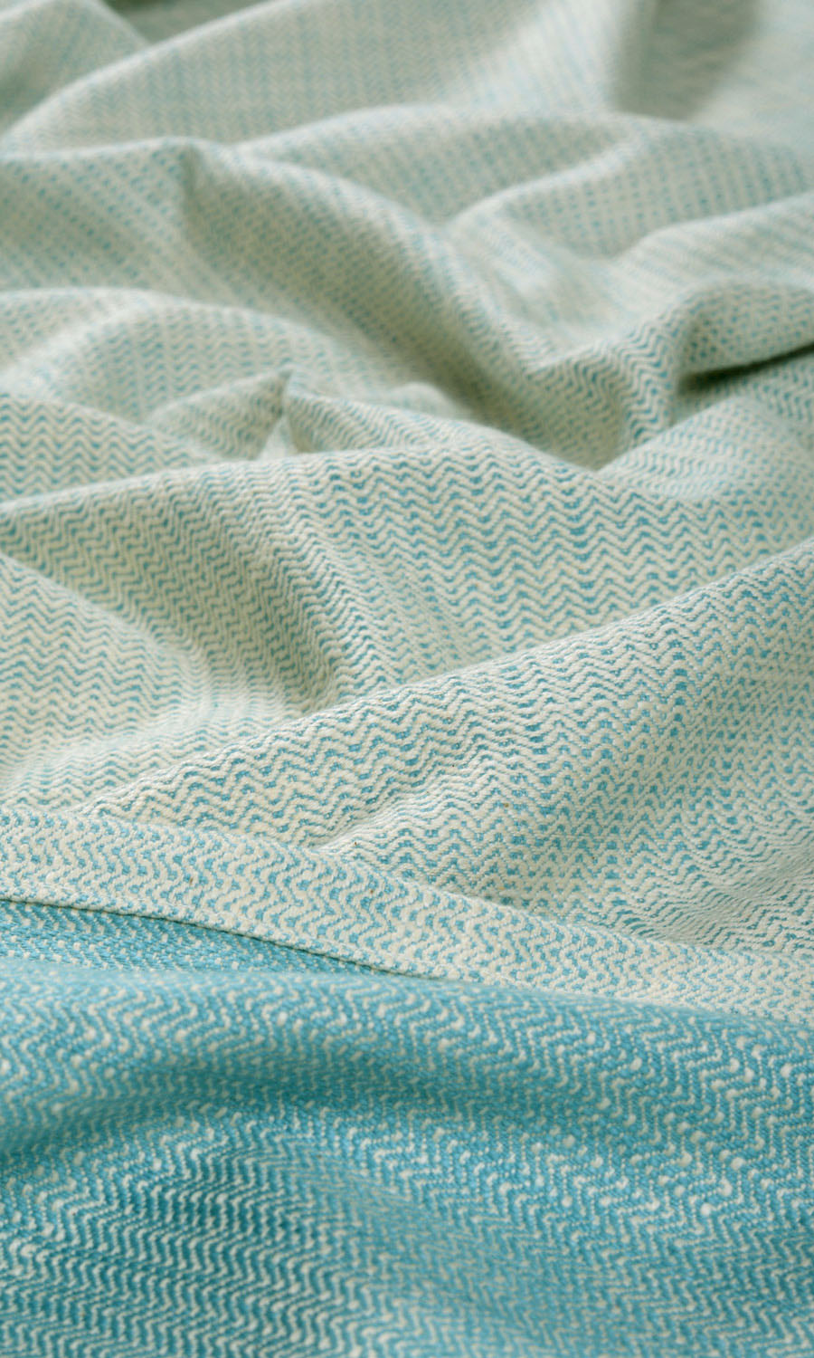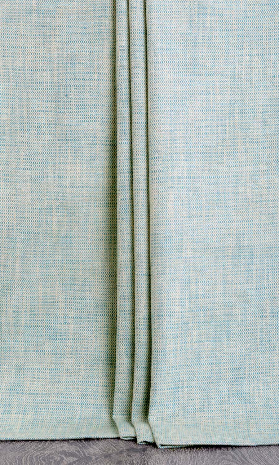 Think of calm waters. Think of tiny little waves rippling across the surface. Think the same feel getting transferred on to a drapery fabric. This is Cobalt Hit for you. A pure cotton fabric in pastel blue color, with really tiny vertical chevrons rippling across to create a sense of serenity. Recommended for roman shades.