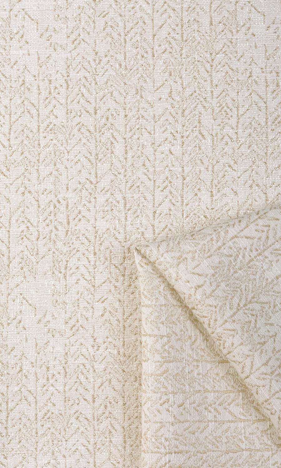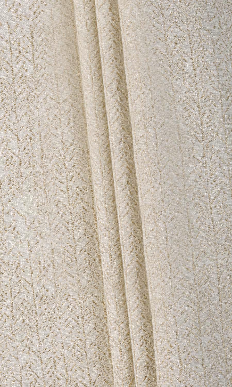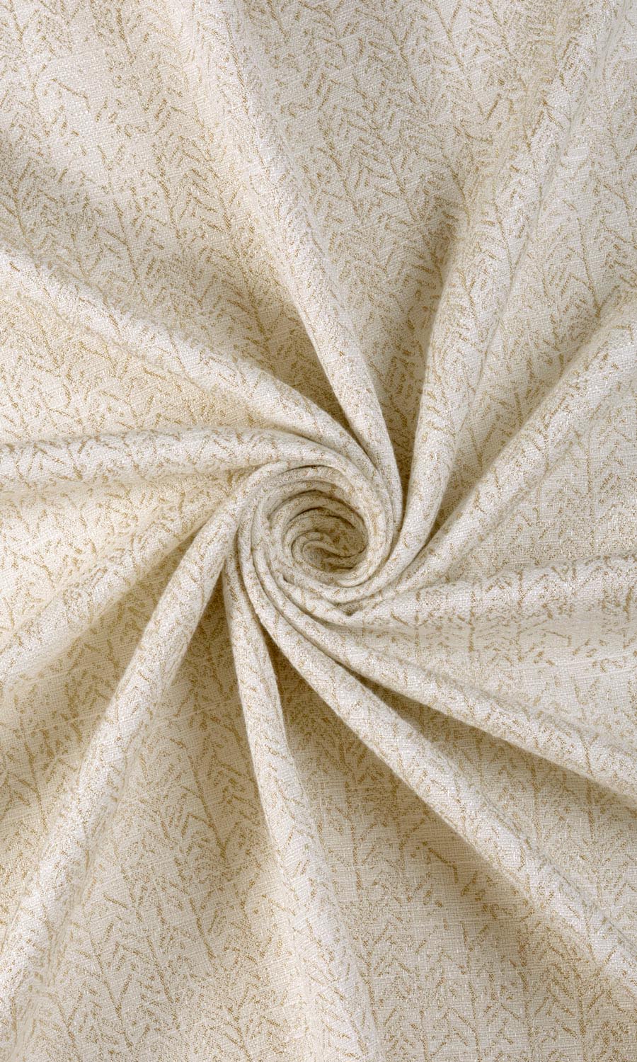 If you prefer minimalism with the barest hint of pattern in your drapery fabric pick, we recommend Cold Coffee. This off white polycot fabric is patterned with the palest beige for an understated look. The part-geometric, part-impressionist pattern has columns and chevron zigzags. The base fabric has a mildly rough woven look; the pattern also has a smudged feel that looks like a work of art.