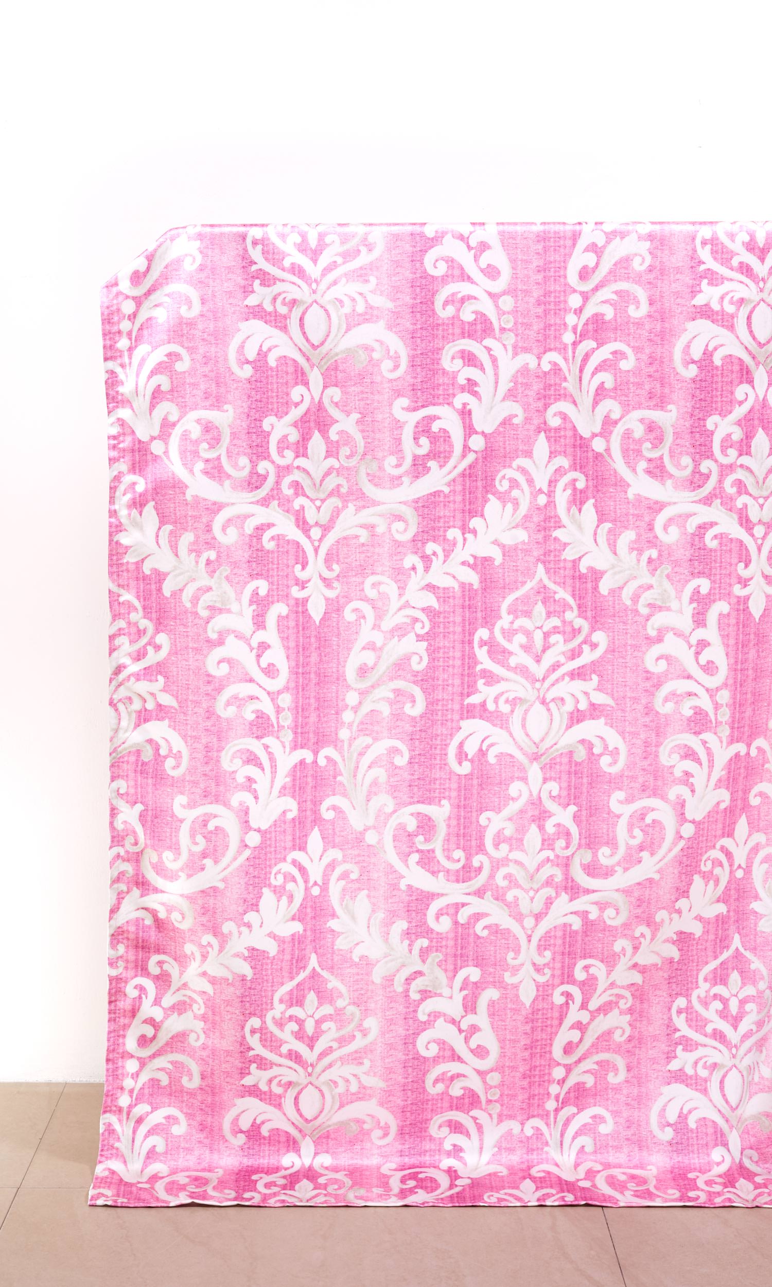 This luscious fabric features an elaborate baroque trellis motif reverse printed in white on a tonal fuchsia pink backdrop. Luxurious and lavish to look at, it is perfect for adding oomph to a staid interior.