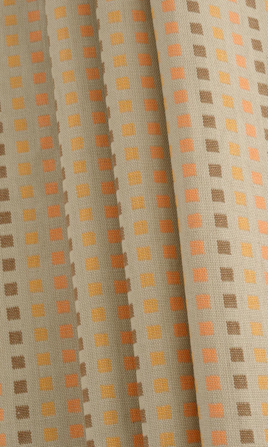 Part of our swoon-worthy cotton collection, Cold Talc features a geometrical pattern that is simple yet effective in almost any decor setting. With a soft tactile body of grey-beige with accents of orange, brown and yellow, it feels like a modern take on cotton, so cozy and full of flavor. This medium weight cotton falls beautifully and never fails to impress - no matter what the heading style - from the fullness of pinch pleats to the minimalist look of an eyelet heading.