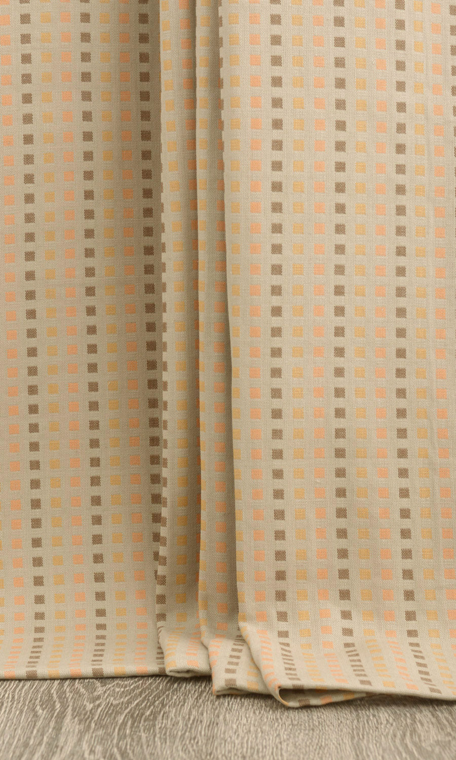 Part of our swoon-worthy cotton collection, Cold Talc features a geometrical pattern that is simple yet effective in almost any decor setting. With a soft tactile body of grey-beige with accents of orange, brown and yellow, it feels like a modern take on cotton, so cozy and full of flavor. This medium weight cotton falls beautifully and never fails to impress - no matter what the heading style - from the fullness of pinch pleats to the minimalist look of an eyelet heading.