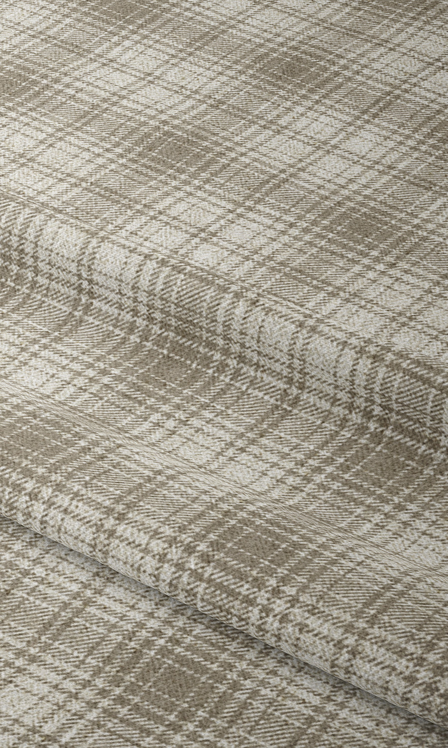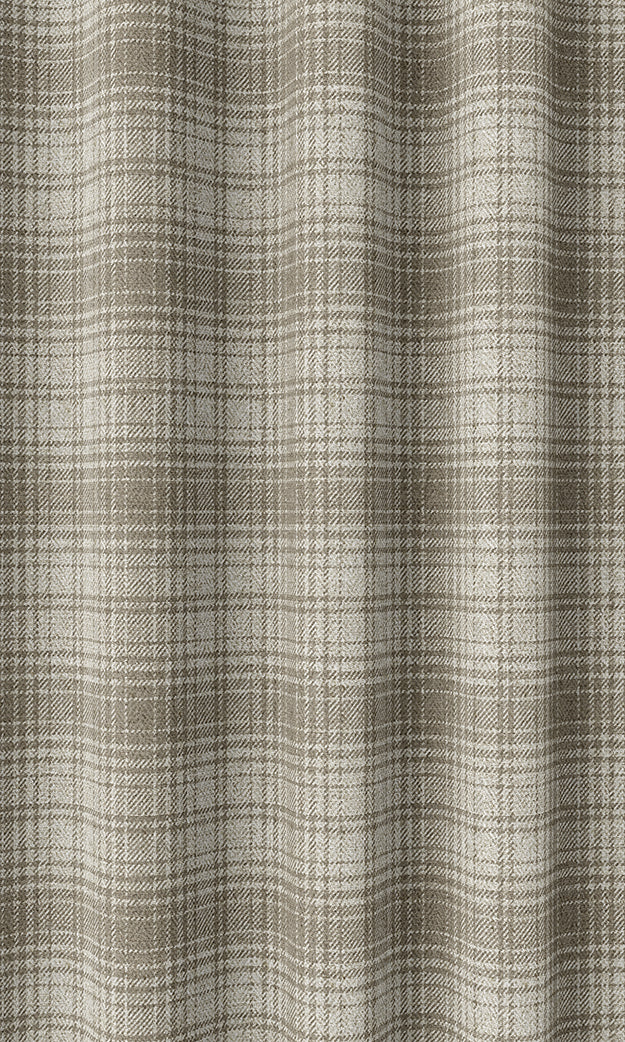A wonderfully versatile fabric that looks good both as a drape and roman shades. While it uses a classic, neutral palette of ivory and a warm, woody beige - it blends the two into a smooth, visually enticing plaid gradient that makes a space more interesting without overpowering it.