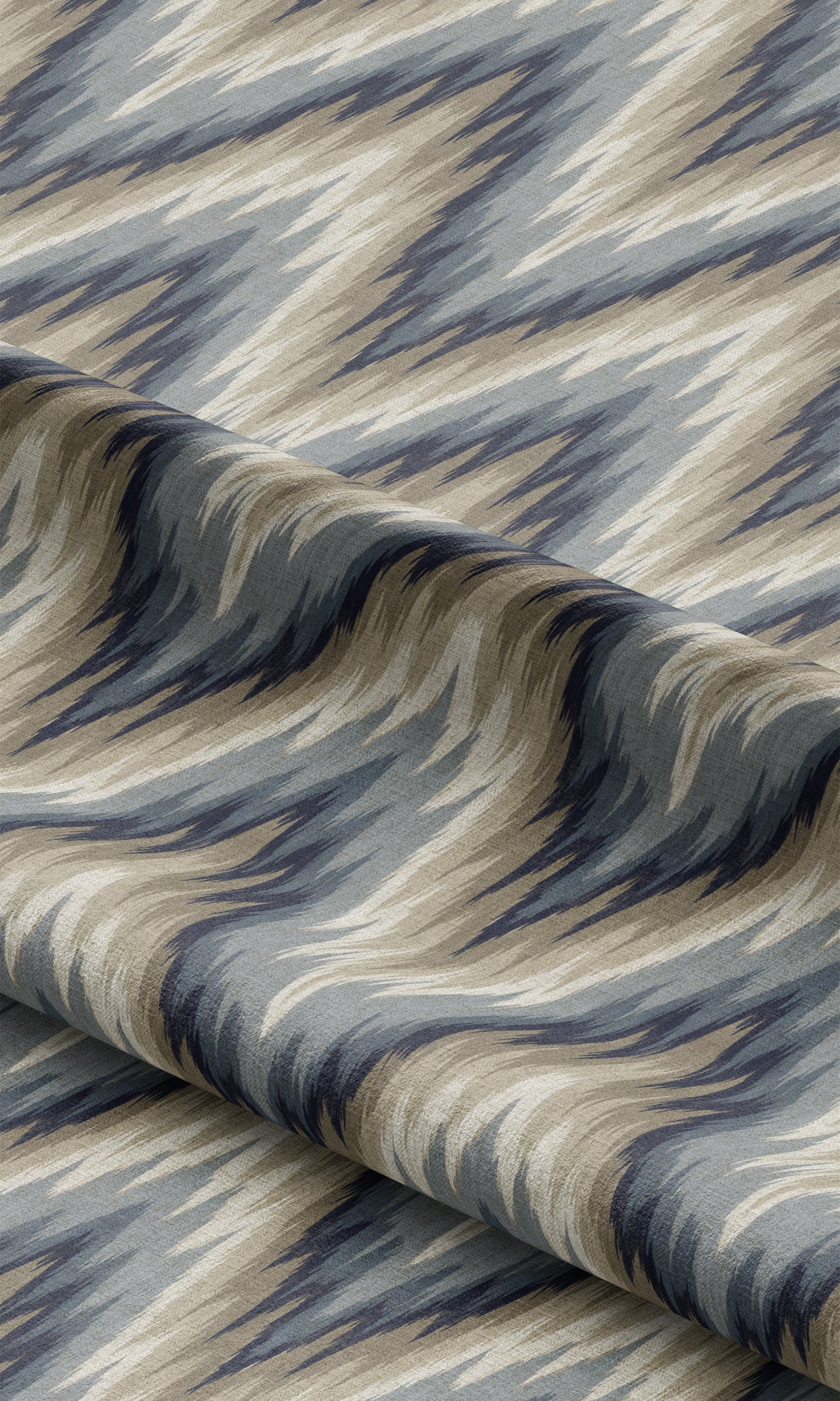 • Its ikat chevron print, where zigzagging lines with feathered silhouettes bring a dynamic energy and eclectic vibe