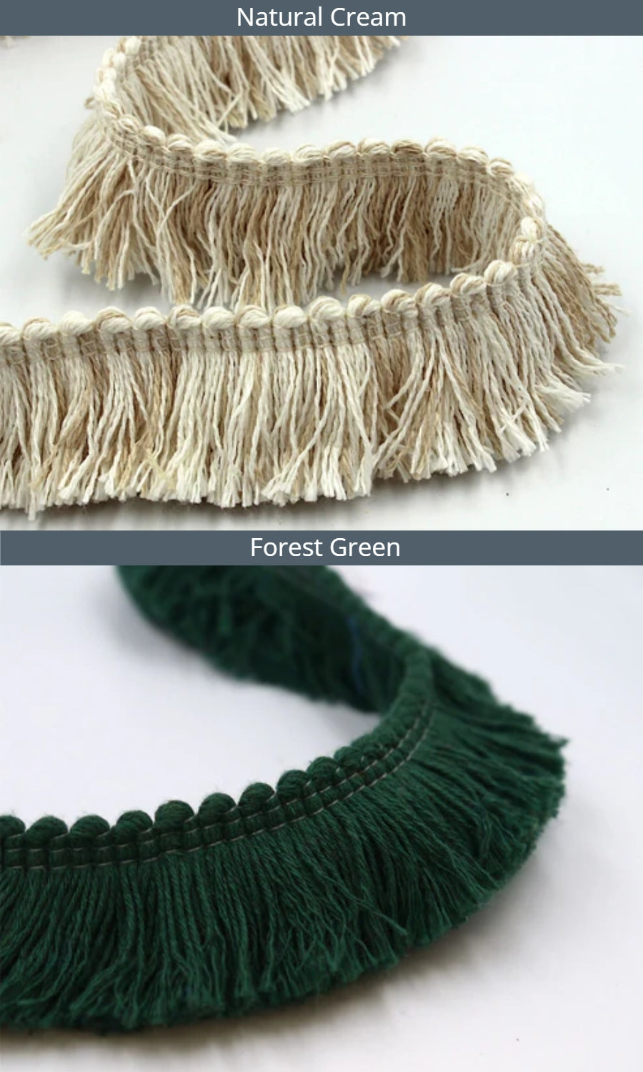 Dress up your curtains with these full and thick, cotton brush fringe trims. This fashionable trim is available in 7 colorways - giving options for every space and palette.