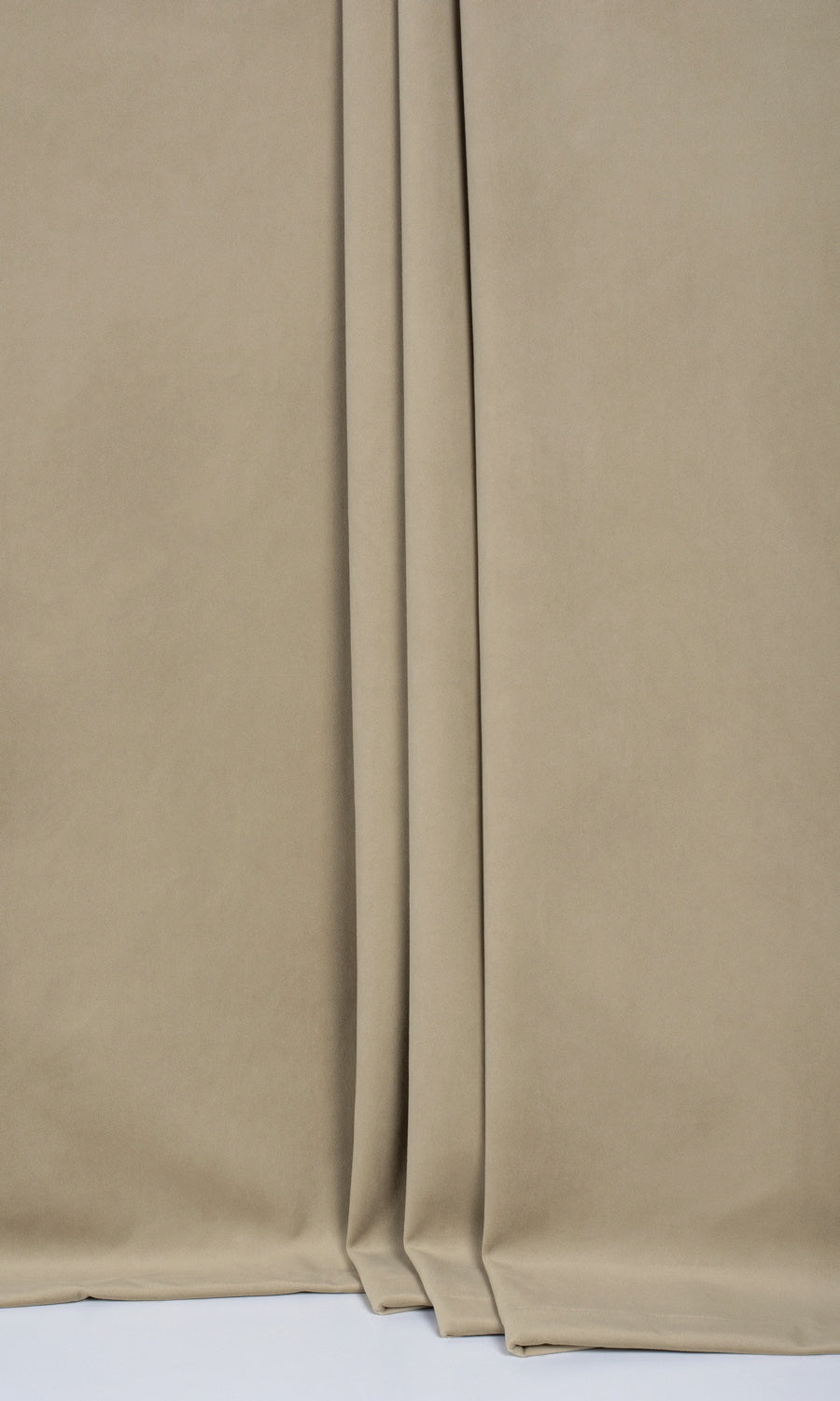 Like the mellow stillness of sand untouched by tide or wind, this velvet may be best described as a cocoon of comfort! Whether you want to add a cosy feel to your modern, minimalist living room or hushed elegance to a calming bedroom retreat, this softly lustrous beige velvet will see you there. And, if you want to highlight a showstopper centrepiece, it offers the most unassuming backdrop - quietly gracious, never competing, always complementing with a whisper of warmth.