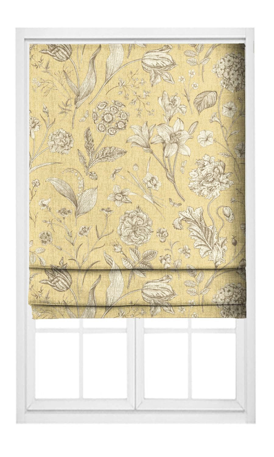 - Add to outdoorsy rooms: Let nature-themed spaces bloom with Cream Yellow floral roman shades. Their collage of native flowers, rendered with meticulous detail, evokes nature's magnificence as much as skilled artistry. Pair them with sculptural pieces, dark wood accents, and woven textures to carry the theme of natural elegance and craftsmanship forward.