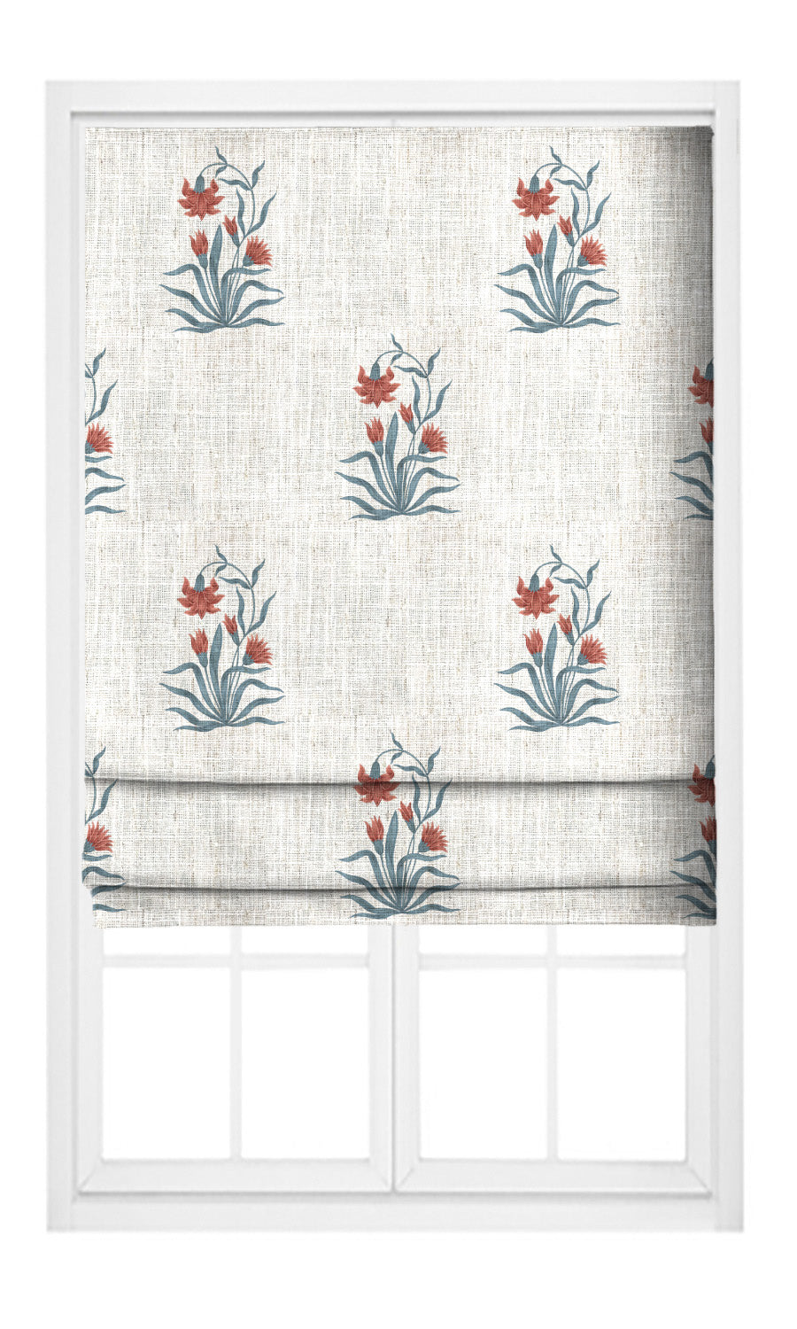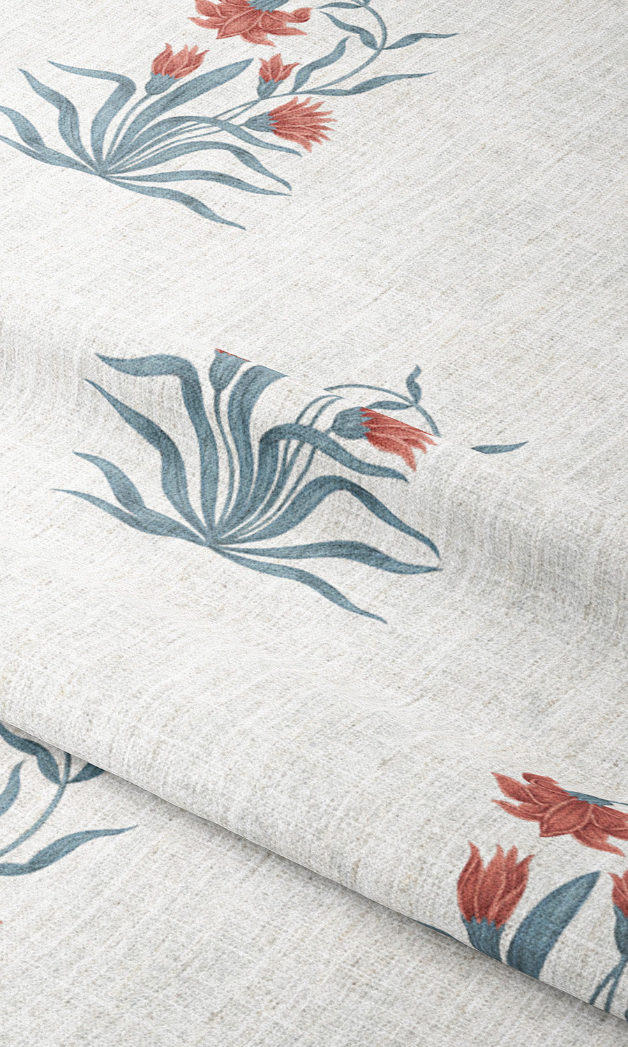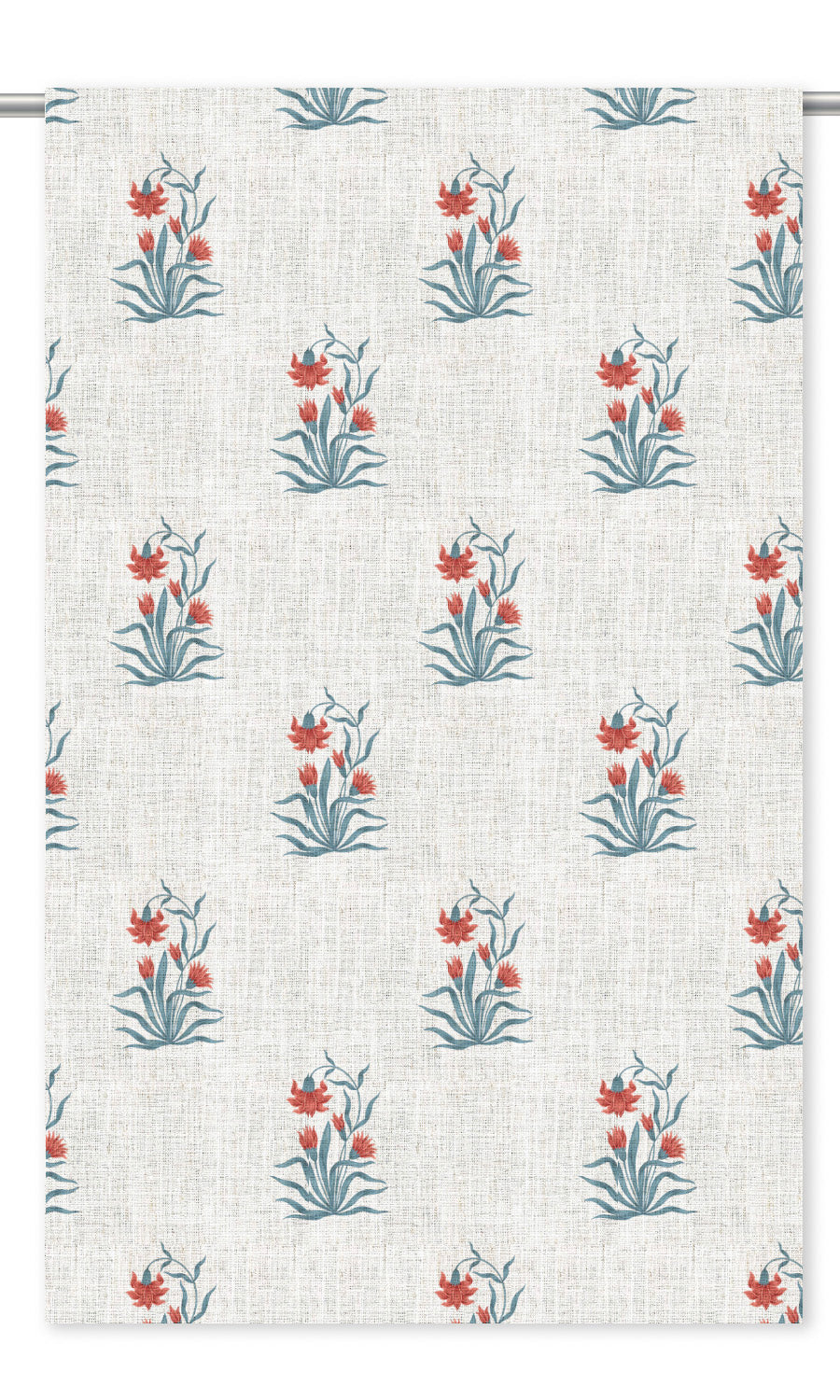 'Crimson Cove' Fabric Sample (Cream/ Brick Red/ Gray-Blue)