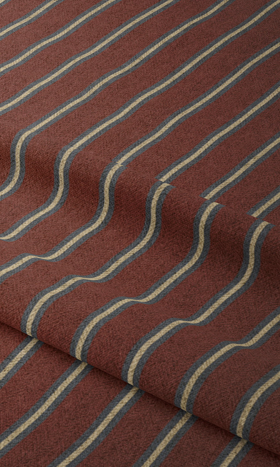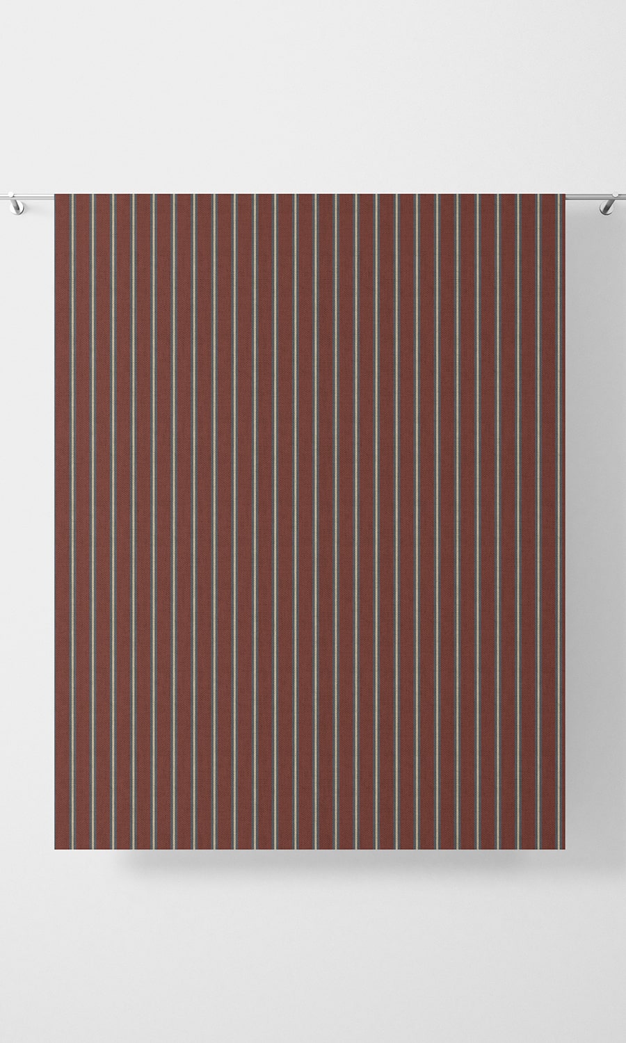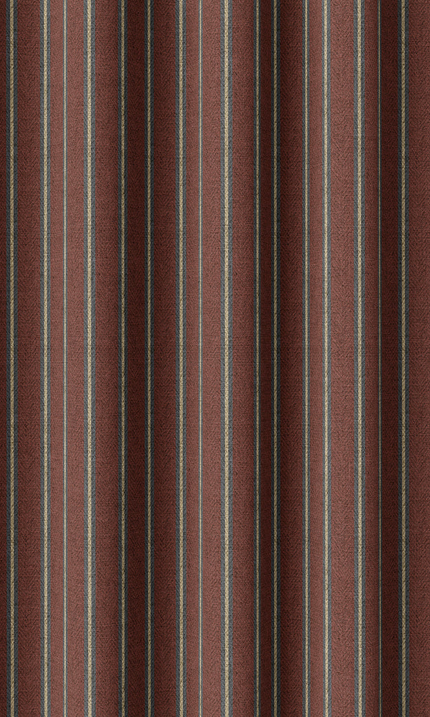 Like the look of clean stripes? This burgundy fabric with gray and cream ticking stripe brings warm hues in simplistic shapes. The masculine vibe sets off the curvy detailing of traditional decor and adds flavor to an outright minimalistic design. The dark coloring helps to combat light and offers a brilliant contrast to bright walls.