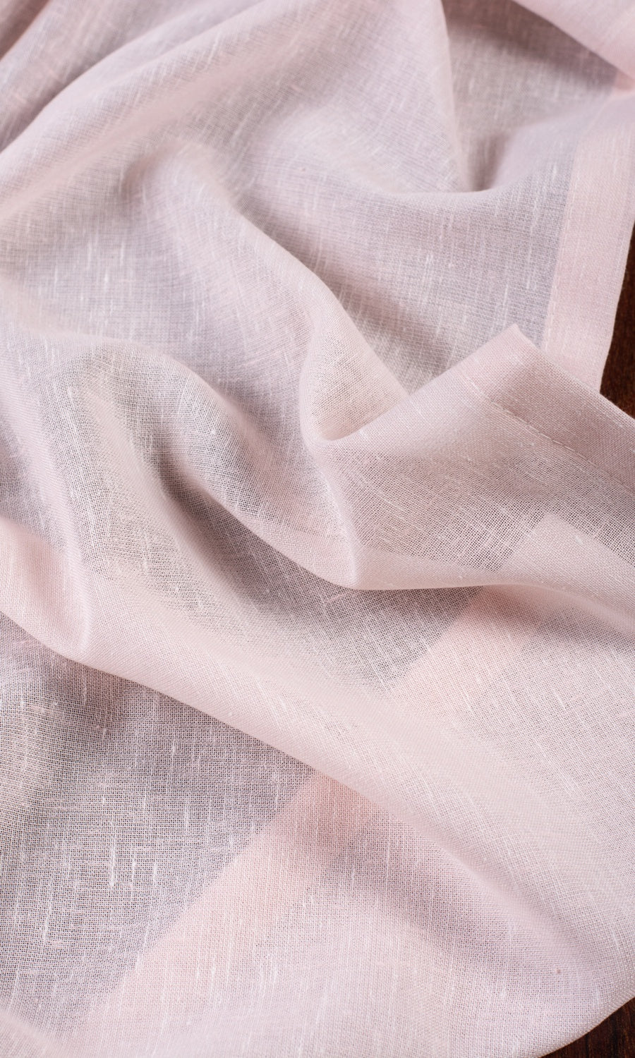 Feathery softness for a tenderly decorated space. A mellow pink sheer that can prettify any space with its translucent cascades and scattered slubs. Give your bedroom, nursery or patio an idyllic twist with the misty blushes of Crystal Barley.