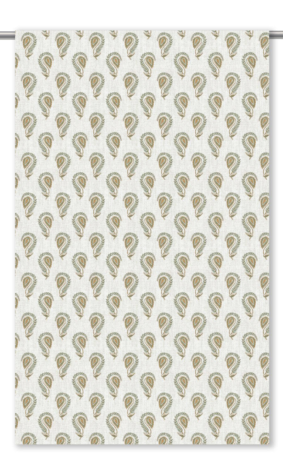 - Layer with all-over prints: Pair the scattered motifs of Dajshi block print curtains with the intricacy of edge-to-edge, all-over prints. This interplay of rhythm and structure brings about a refined contrast that adds a layer of visual interest and infuses the space with a rich personality.