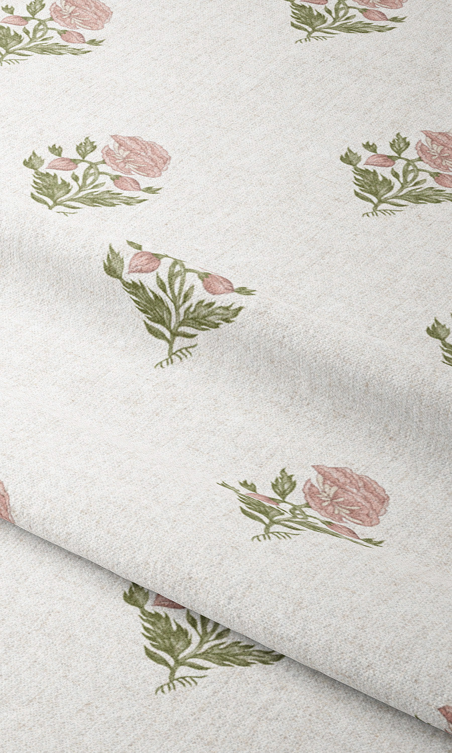 - Voice your decor style: Add cottage accents to your decor with Deep China cream linen-textured floral roman shades. Their light tones, warm texture, and hand-blocked motifs echo the homespun charm of quaint countryside homes where everything feels rustic, collected, and lived-in.