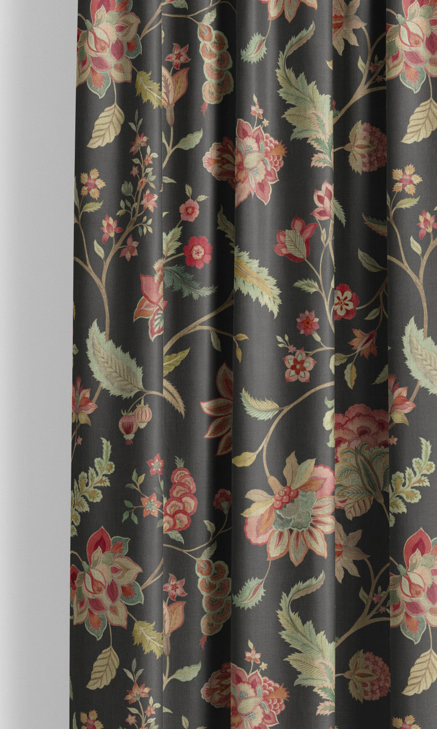 - Opt for pinch pleat heading style: Style Deep Root Jacobean floral curtains with pinch pleat headers, to echo the grandeur of their motif and rich tones. The even folds and embellished contours of pinch pleat curtains bring structure and symmetry, anchoring the space in opulent, old-world elegance.