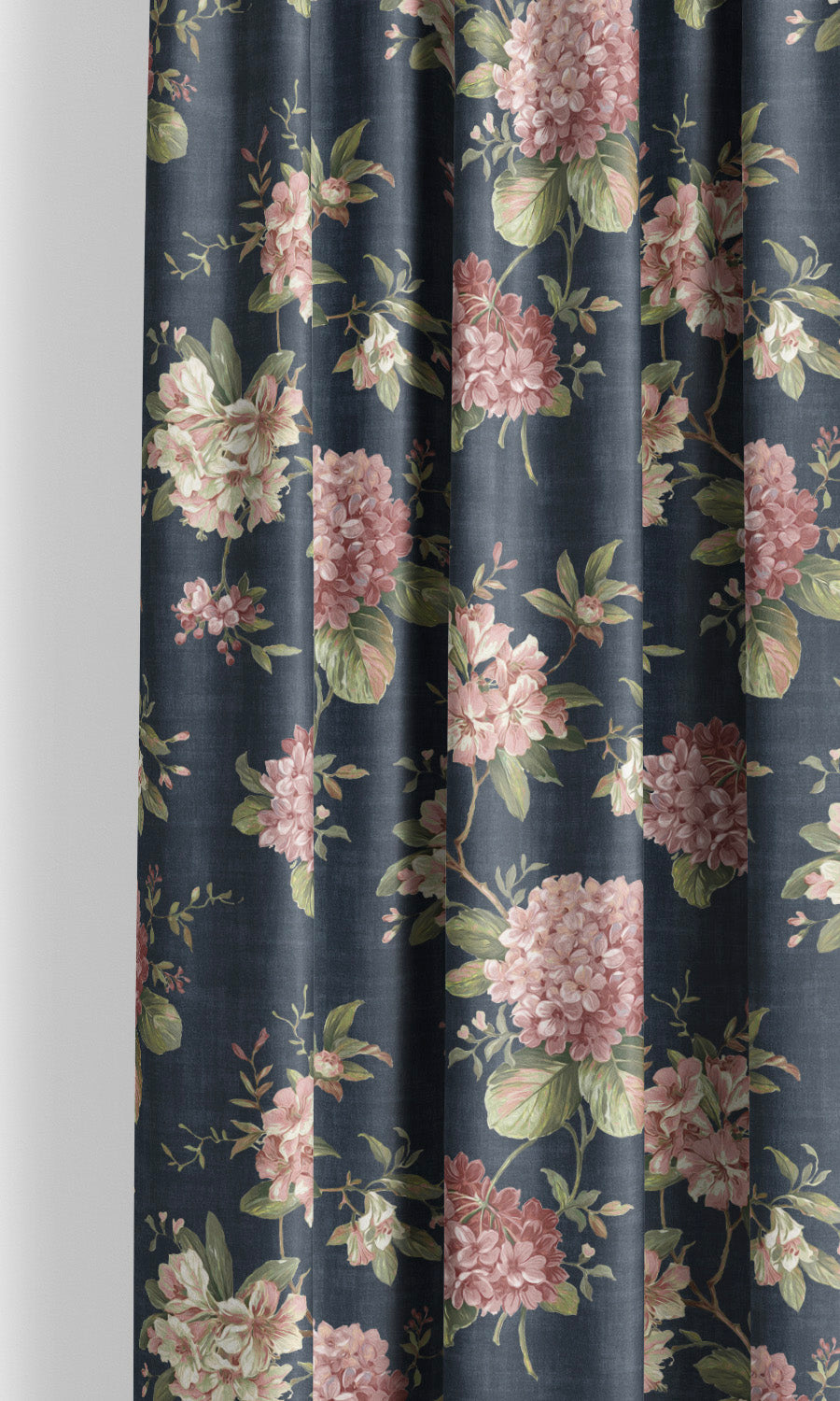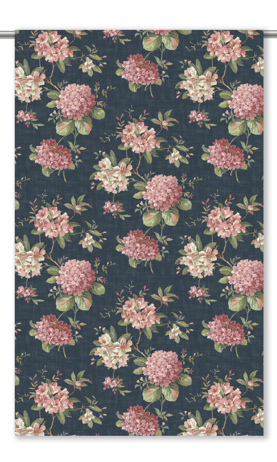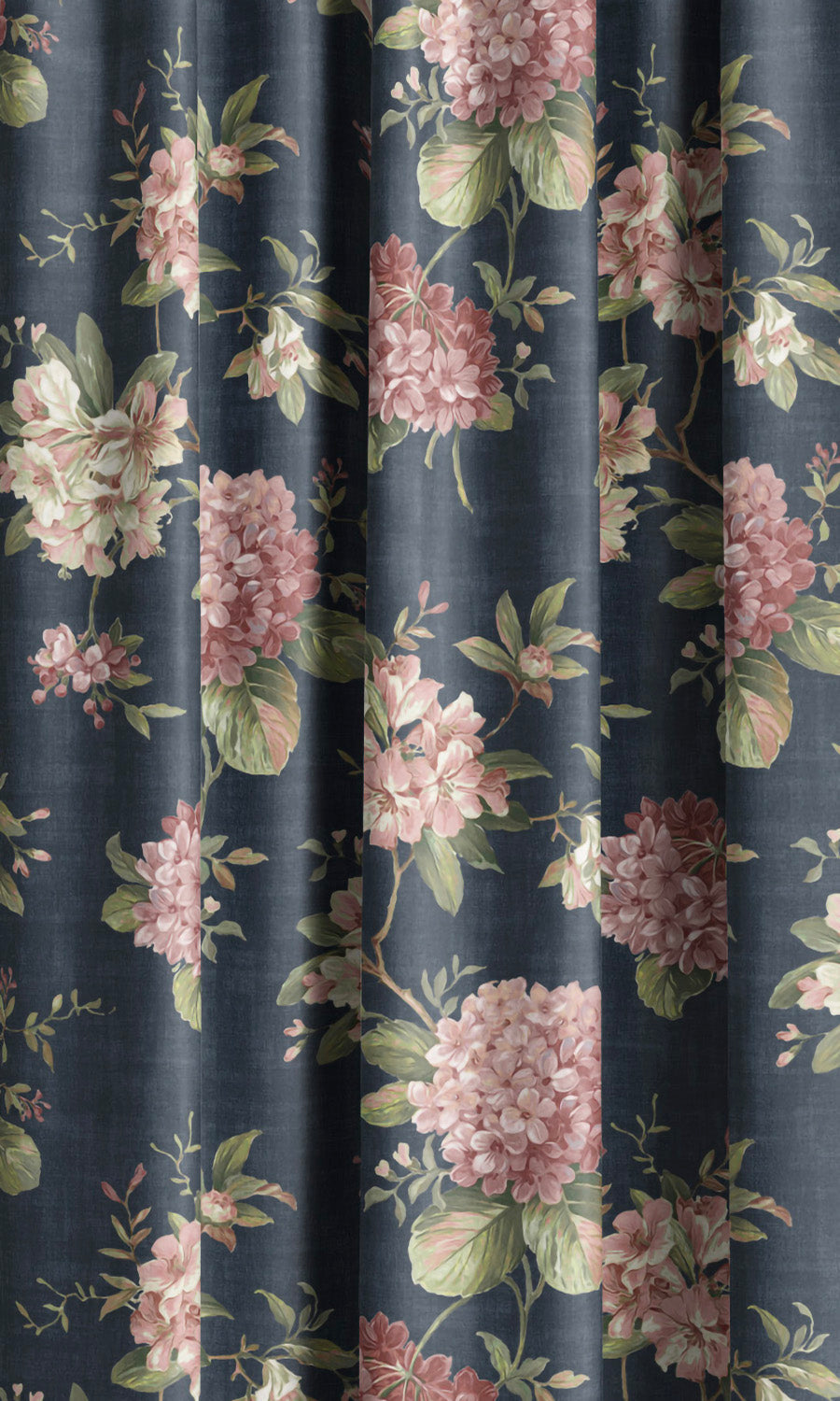 - Its tapestry of hydrangea clusters and periwinkle posies, evoking Victorian-style dramatic elegance