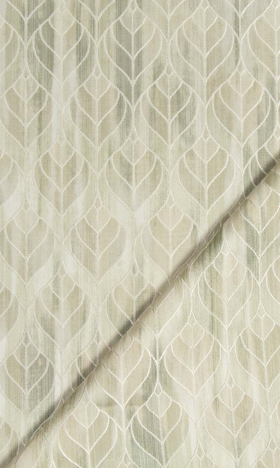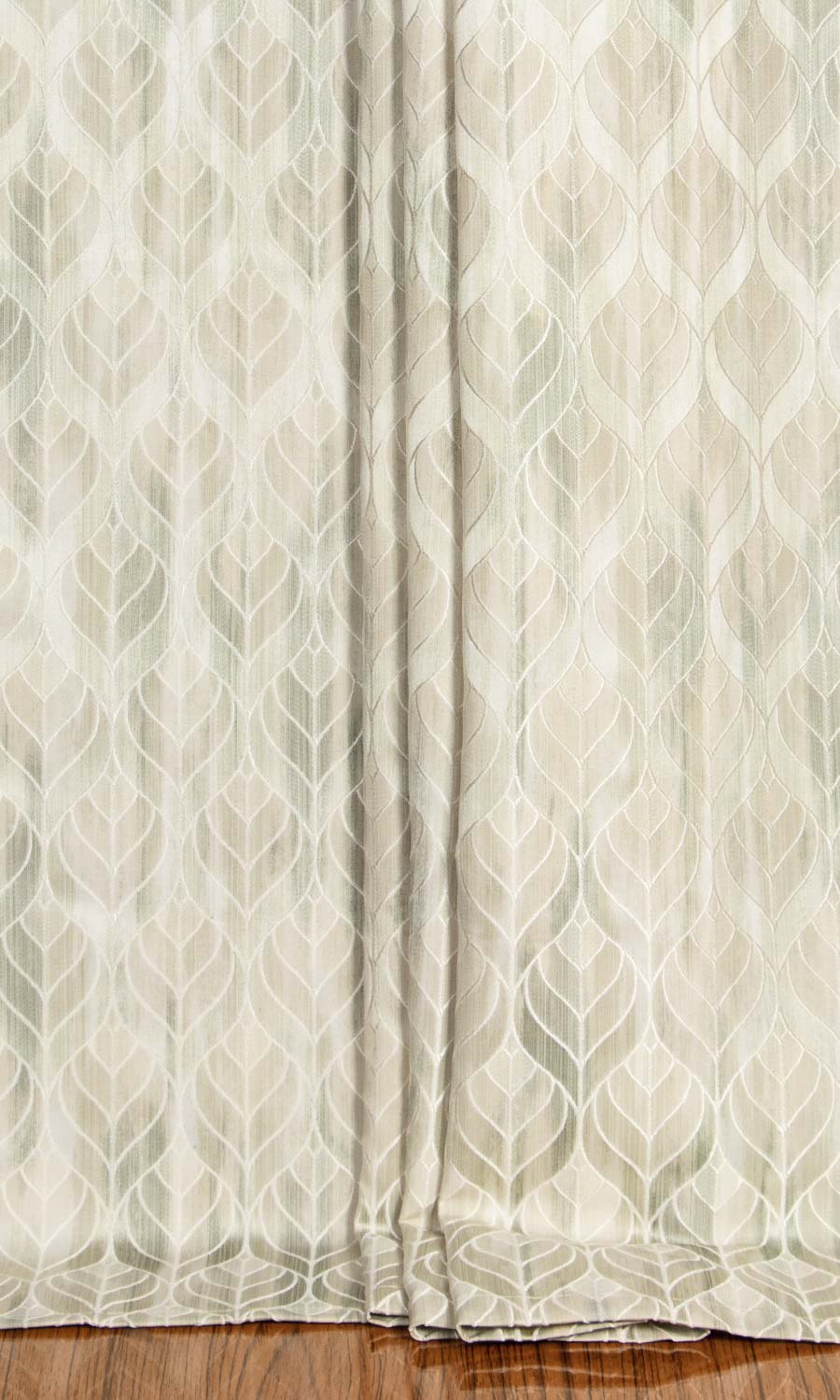 Muted greens and leaf ribs all over - a still from a nostalgic cloudy evening sidewalk! This understated beauty that taps an earthy palette in foggy shapes offers a contrast of forms with the neatly outlined leaf motif layered on top. With a vast capacity to mingle with varied decor styles, curtains and roman shades in this lovely fabric are a timeless addition to the home.
