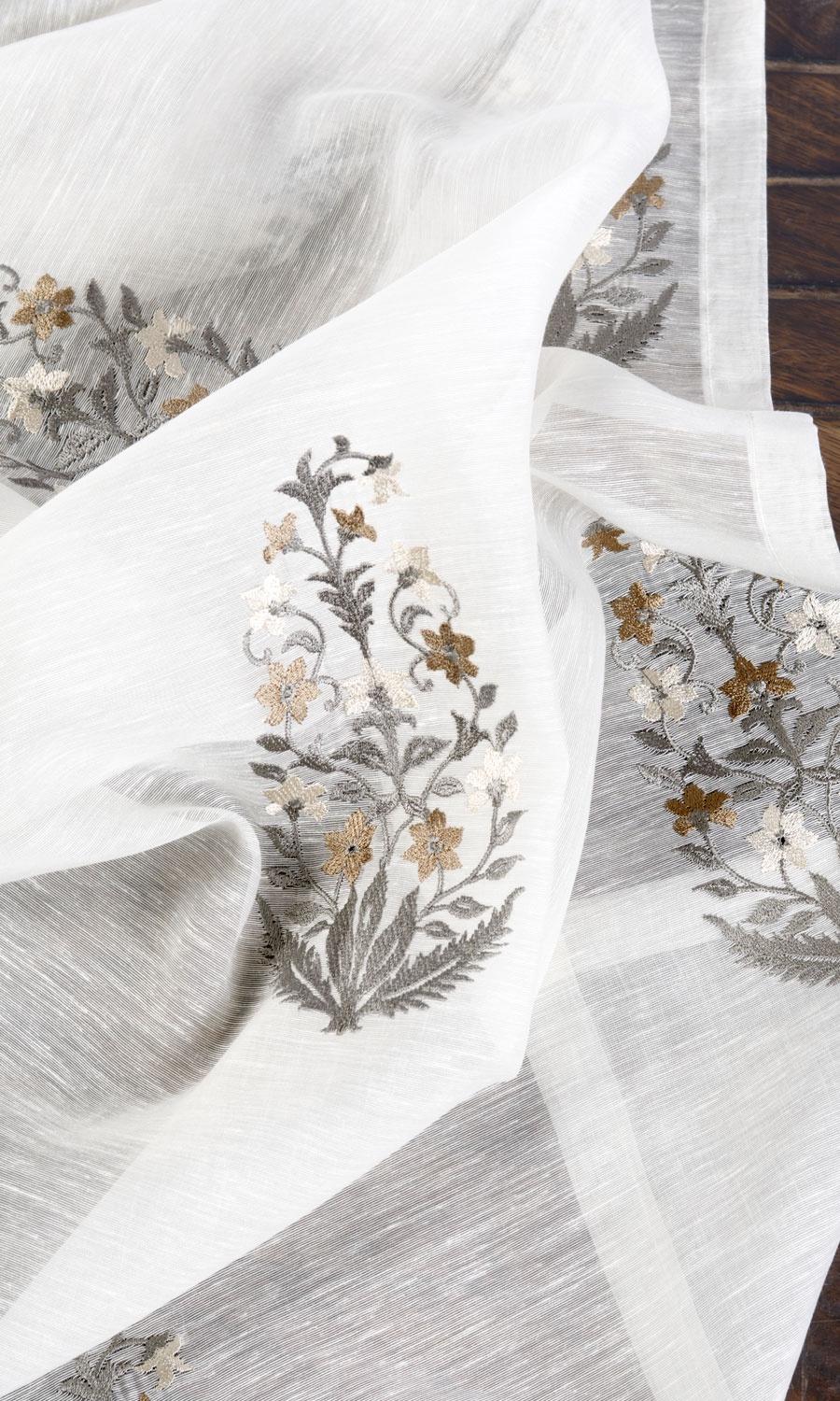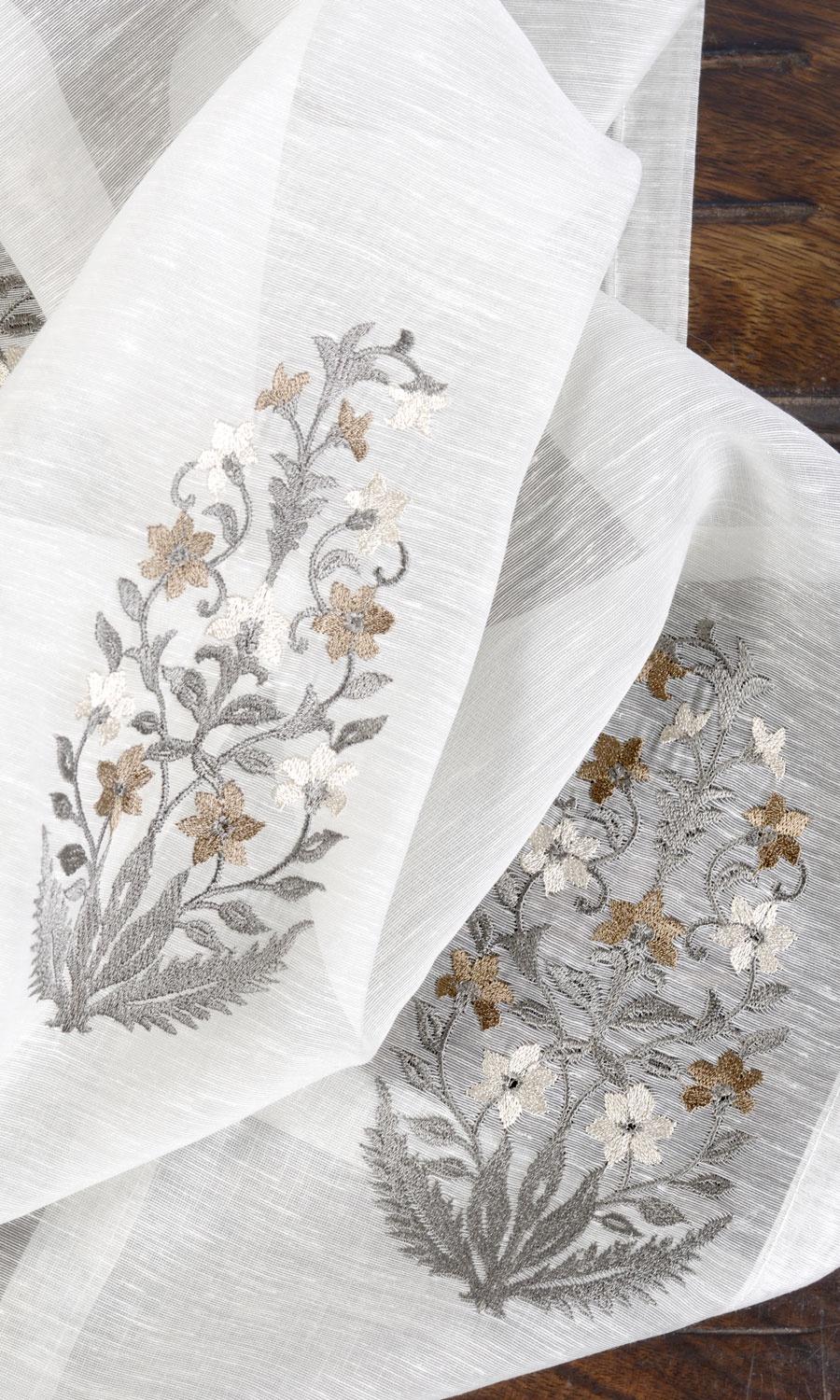 A showstopper paisley. Floral elegance in neutral colors and nimble embroidery merge with paisley to make a jaw-dropping feat. Demir will veritably steal the show, not with fanfare and hullabaloo, but with a soft whisper, a gentle breeze, a silent gaze! Pair with solid brown drapery in a dreamy bedroom or let it shine alone on a sunny patio door - this diva will set the stage ablaze.