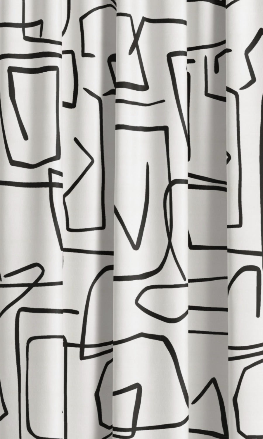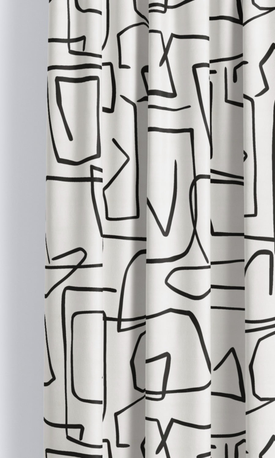 - Balance a vibrant room: Harness the neutrality of Desert Queen black and white abstract print curtains to counterbalance the visual energy of bold colors and intricate patterns. Their black and white palette allows vivid tones to take center stage, while their striking contrast and abstract pattern add drama to the room without overpowering the scene.