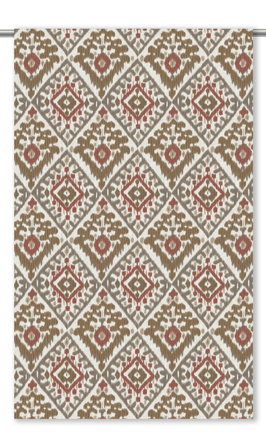 - Its balanced palette, where rust red brings vibrance, while grays and browns lend understated elegance