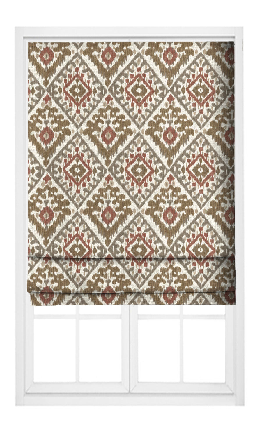 - Edge the shade with trims: Adorn these ikat roman shades with handmade trims to enhance their bohemian look. Consider pompom, tassel, and fringe trims that add a decorative layer befitting of the ornate pattern.