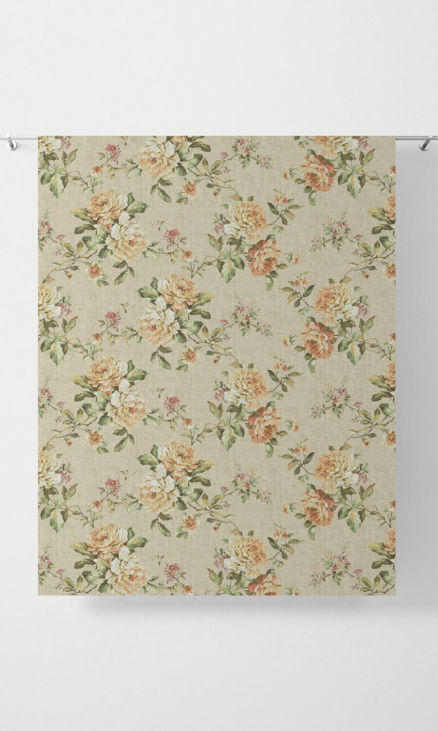 Brighten your home with the freshness of a Spring morning! Set in a pale yellow backdrop, the peach orange roses featured on this fabric can bring the serenity of a blooming garden indoors. The vintage French floral pattern paired with a modern color palette makes window treatments in Diana a timeless decor element. Drapes and roman shades stitched of this lovely fabric promise to render softness and feminine touch to any interior.