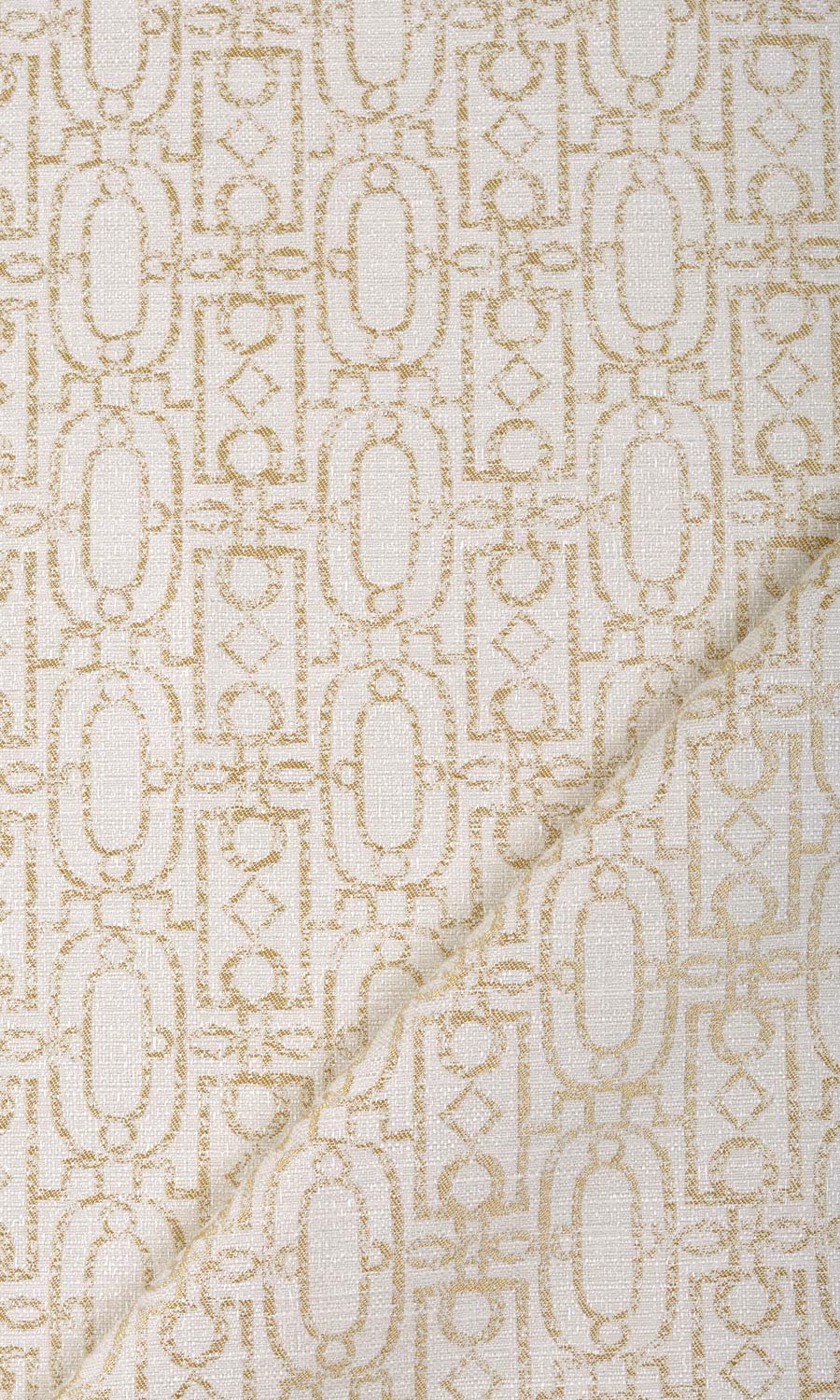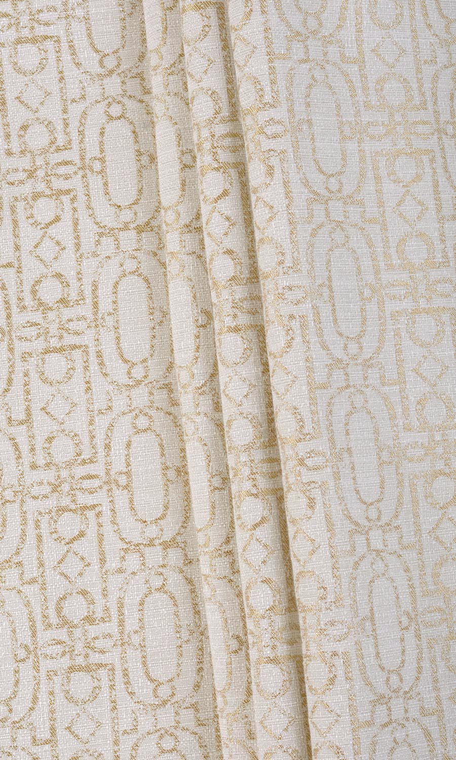 Like monochrome look with off-beat patterns? Check out Dollop. Its color combination is a very gentle pale beige on off white. The all-over pattern is a delicate geometric one with rectangles, ovals, diamonds and circles creating a tribal art look. The polyester cotton blend is sturdy as well as smooth in draping.