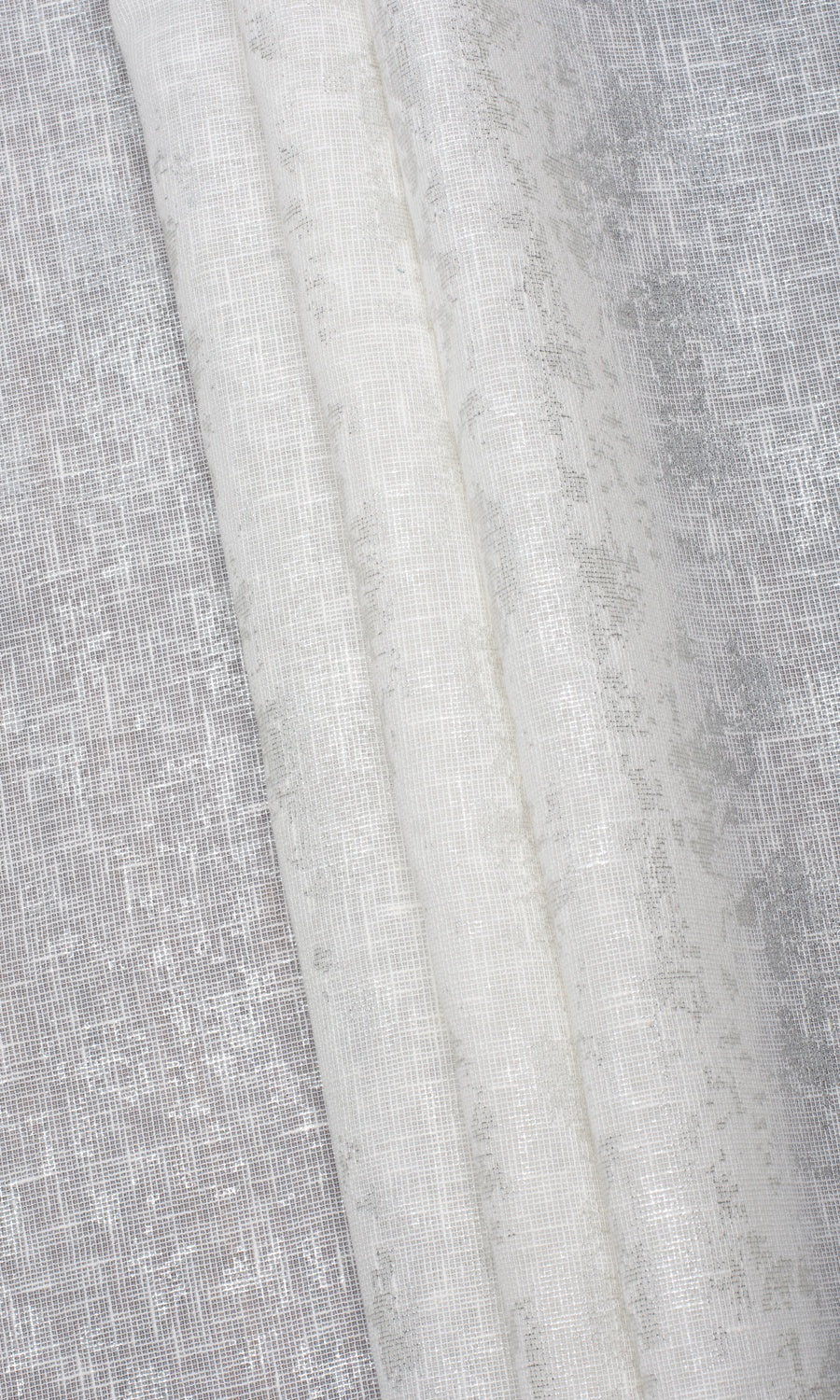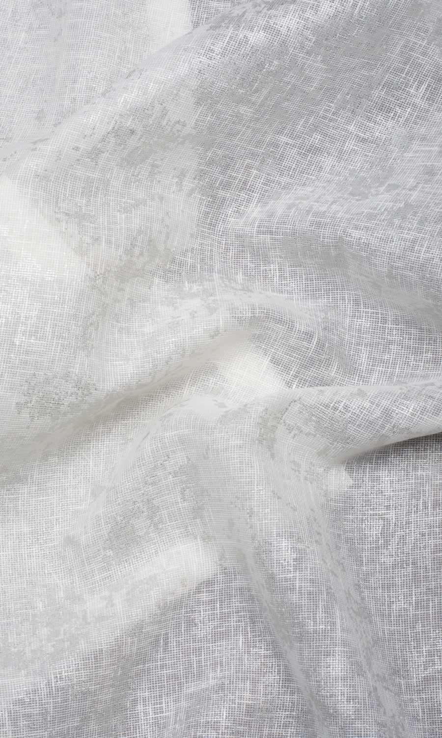This exuberant sheer fabric is just the right bit of glam you need to finish a formal living room or a Bohemian haven fraught with metallic tones. Its white broken only by the slubs of its weave and the silver accents of its abstract print offers a modern pattern in a tried-and-true regal palette that never goes out of style. So, you can welcome light during the day and let it glitter under your chandeliers at night offering a fiesta of starlight and stately elegance.
