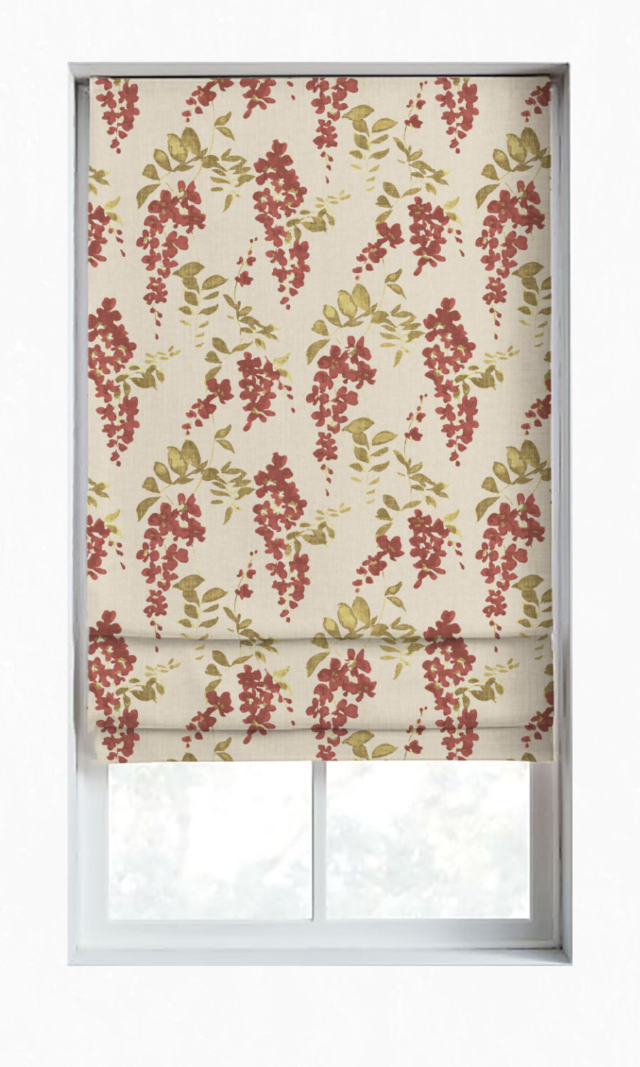 Lend a garden-inspired touch to your living space with this flower-strewn flatweave fabric, while it blocks out unwanted sunlight, making your space so much more tranquil. Brimming with botanical elegance, this fabric features springs of red blooms on a background of warm ivory. Great choice for bedrooms, nurseries and south facing living rooms.