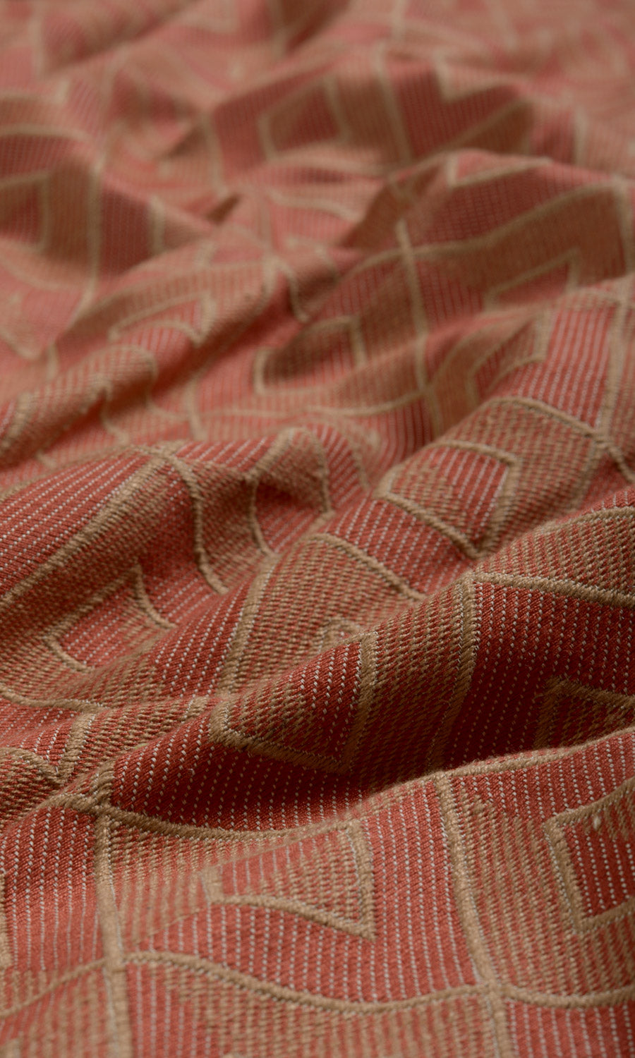 As practical as it is pretty. Sturdy enough to be used in heavy duty spaces, its cherry red and peanut brown colorway can go without needing dry cleaning for long durations. The diamond check weave with alternating colors is gorgeously geometric. We recommend this fabric for earthen tones and homely lived-in decors.