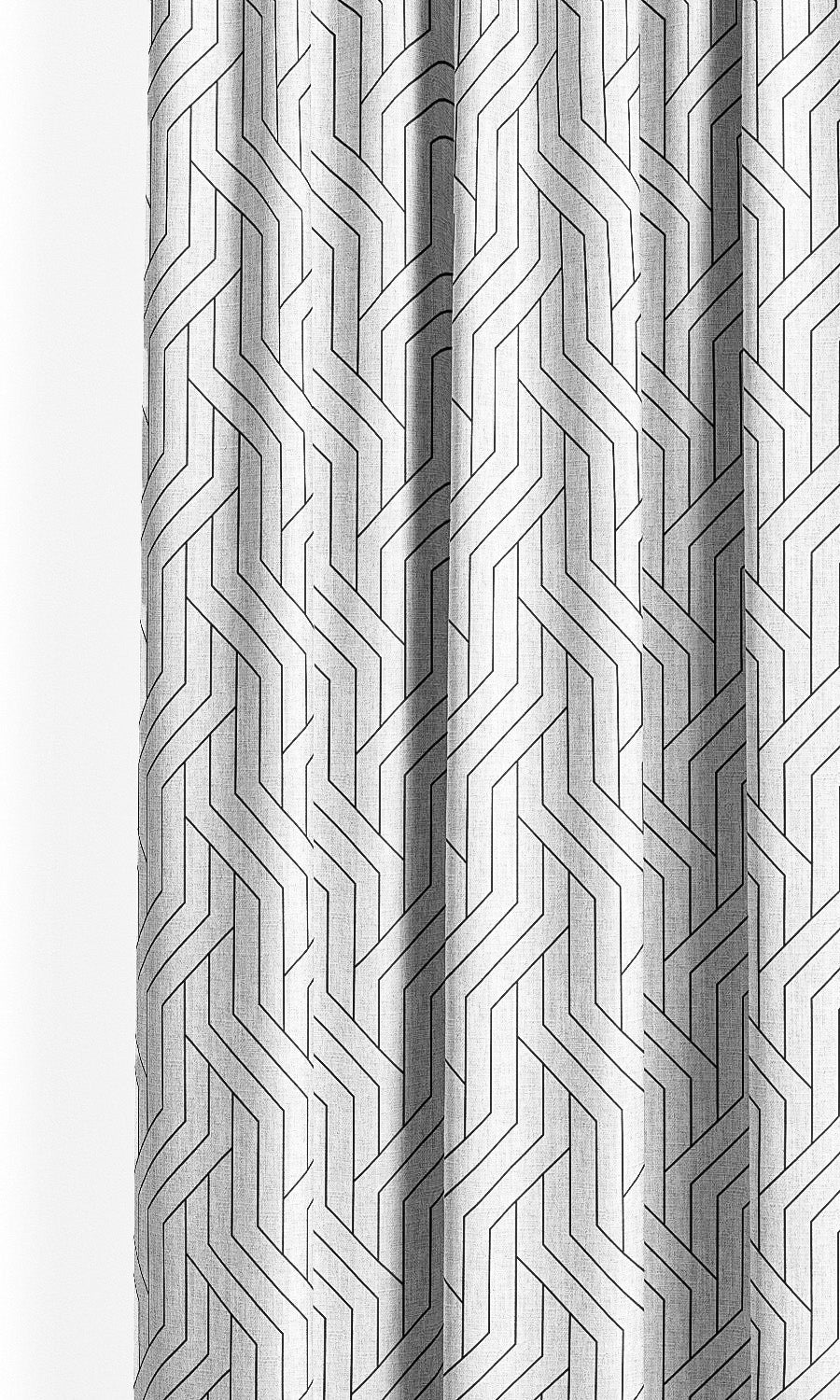 - Add to Scandinavian spaces: Count on Ebony King black and white geoprint curtains to air the soft, uncluttered beauty of Nordic interiors. Their clean-lined print highlights the room's minimalist palette and adds movement and depth to the space ever so discreetly, maintaining the hyggelig calm across the space.