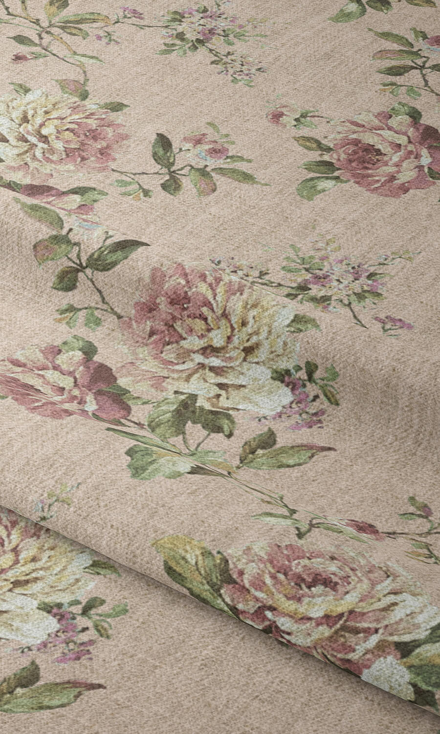 Brighten your home with the freshness of a Spring morning! Set in a pale pink backdrop, the blush roses featured on this fabric can bring the serenity of a blooming garden indoors. The vintage French floral pattern paired with a modern color palette makes window treatments in Elysium a timeless decor element. Drapes and roman shades stitched of this lovely fabric promise to render softness and feminine touch to any interior.