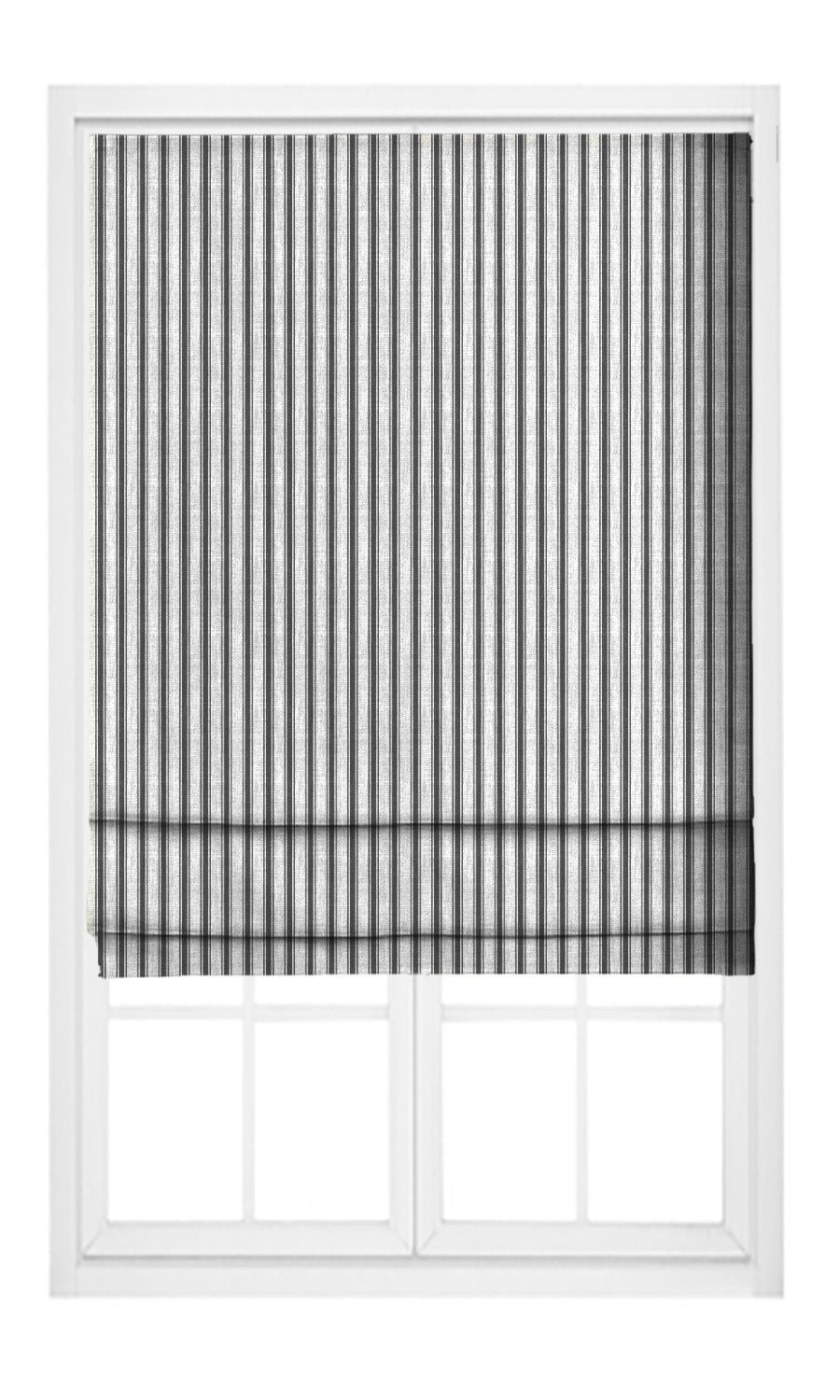 - Anchor rugged spaces: Dress a masculine or industrial-themed home with these charcoal gray striped roman shades that echo the rugged beauty of steel and stone. Pair them with leather and wood accents to strike a balance between grit and refinement.