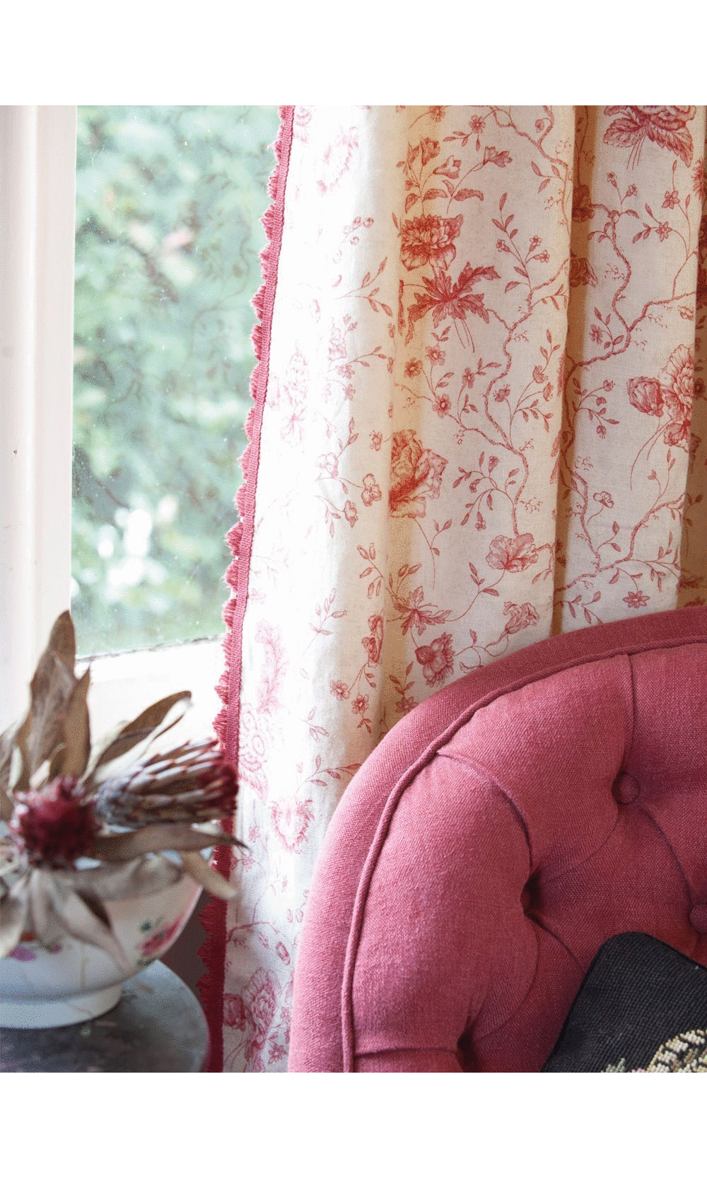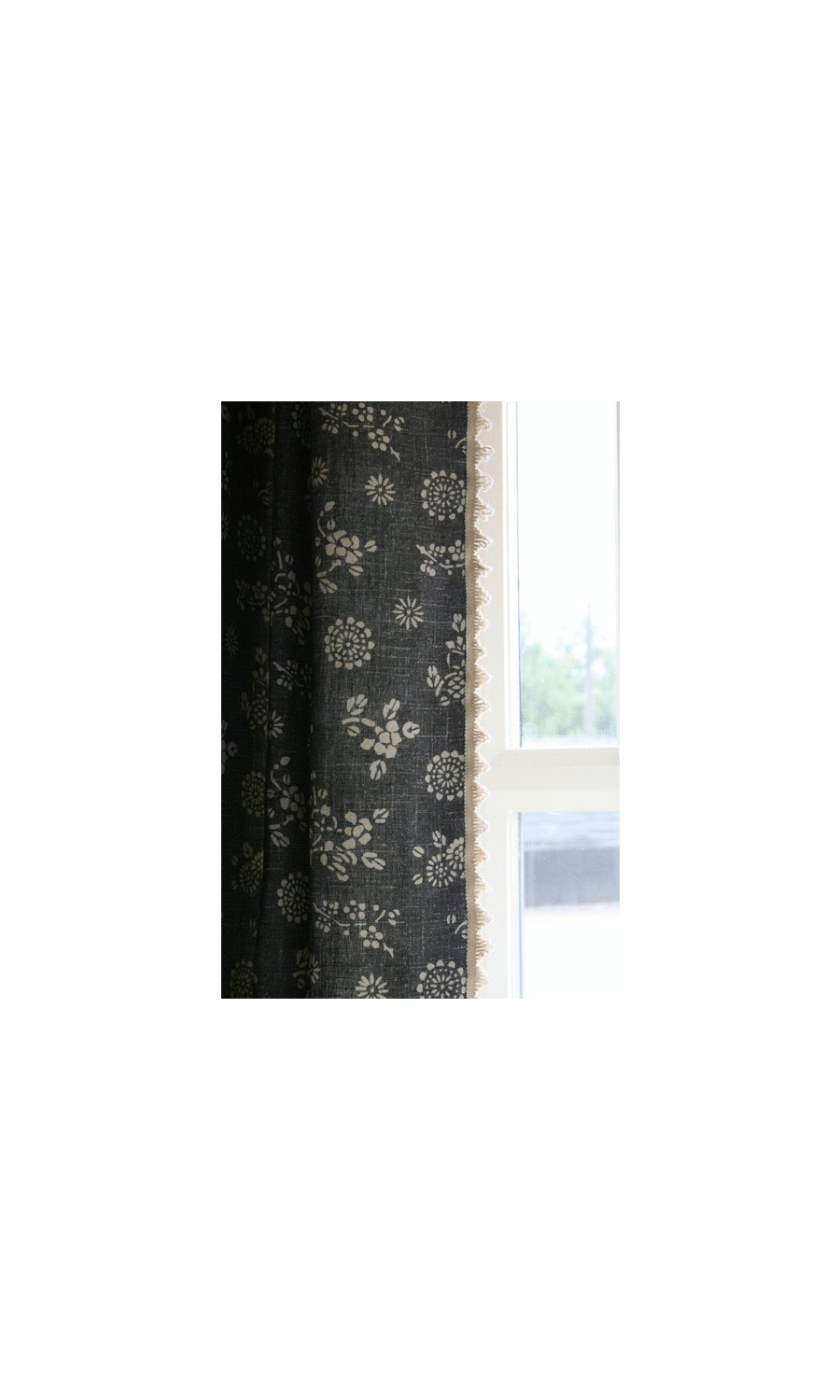 Our fan edge trims are handsewn on the left and right edges of the curtain panels for a delightful effect.