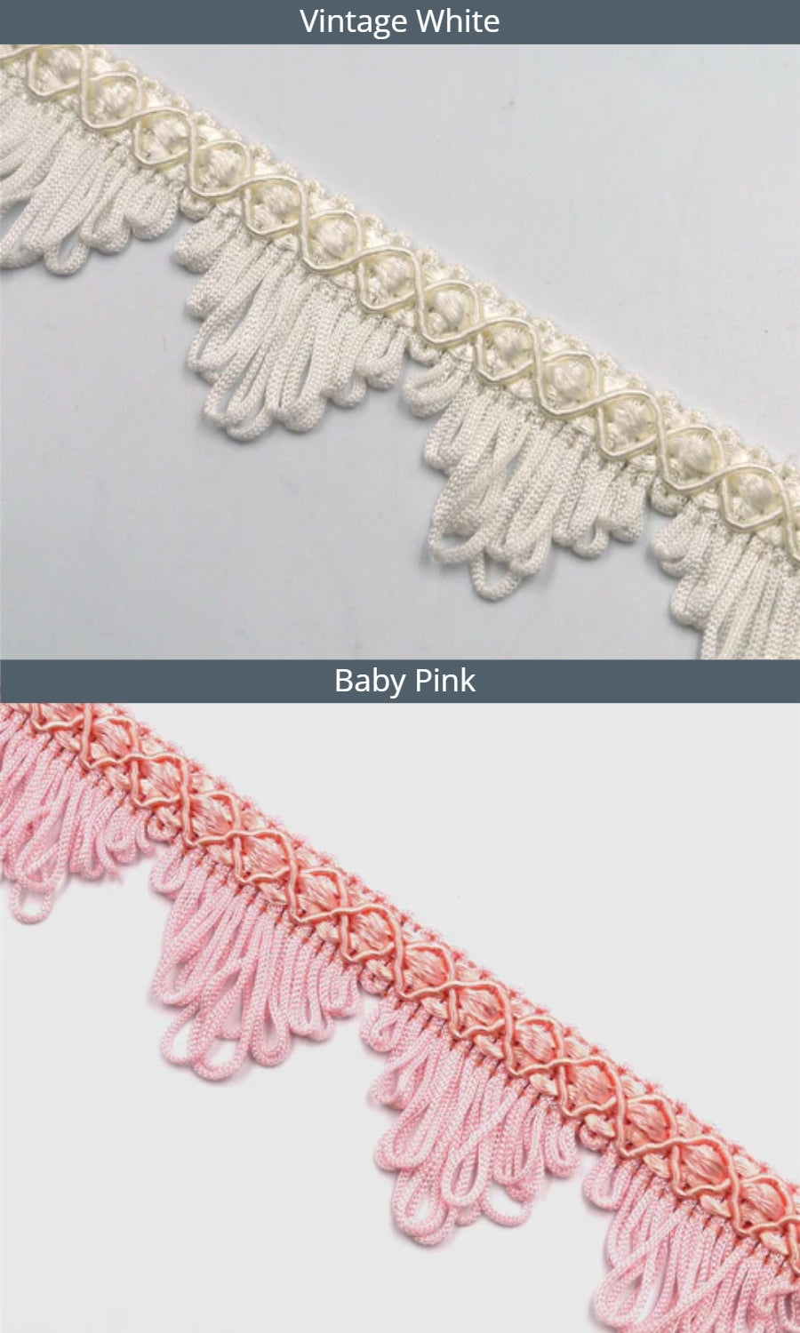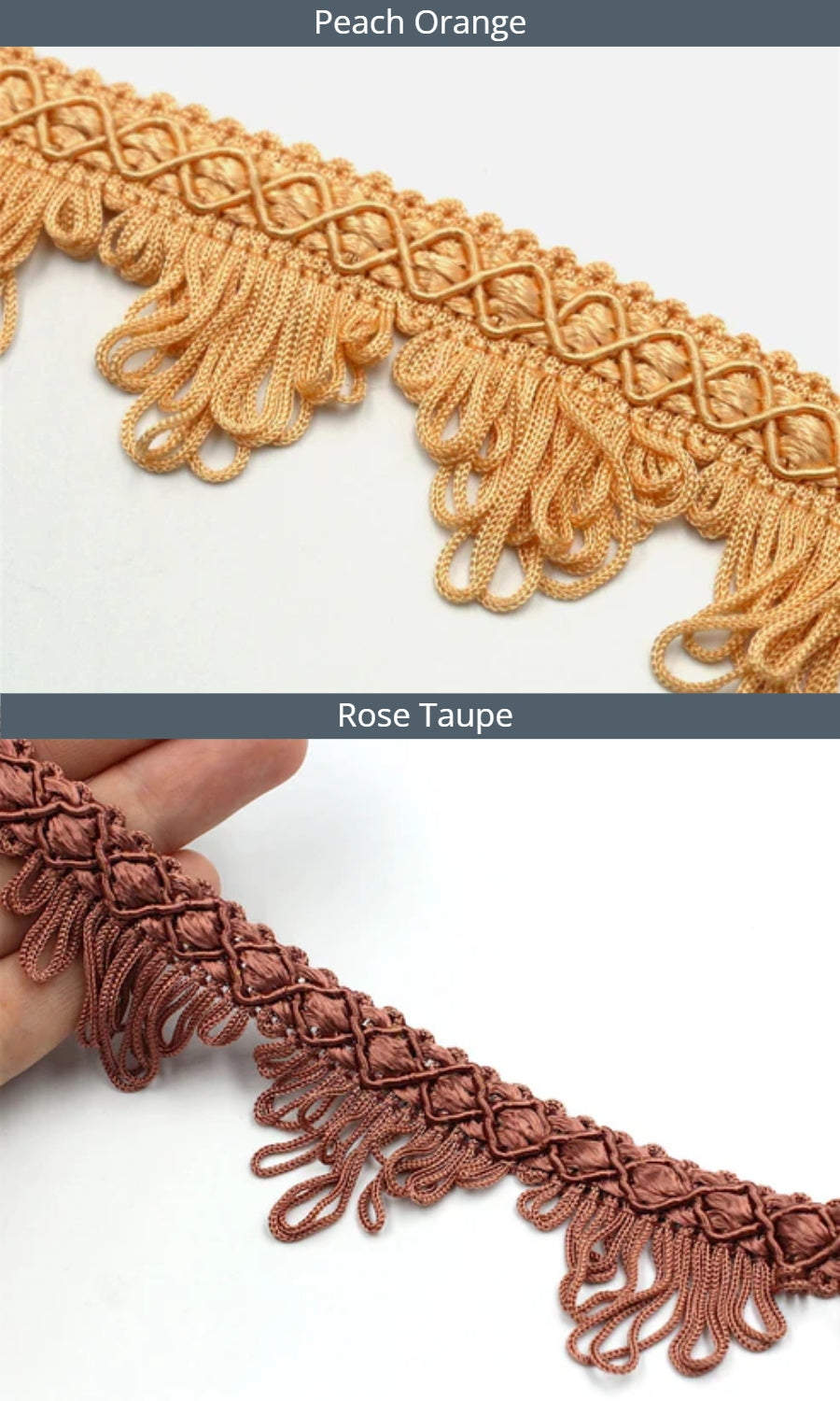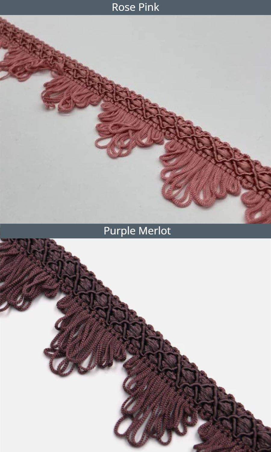 Perfect for both curtains and roman shades, and with 14 colors available, you're bound to find one that suits your style. The loop fringe on these braids is soft, 100% cotton, and the finished trimming width is 40 mms from the edge of the braid.