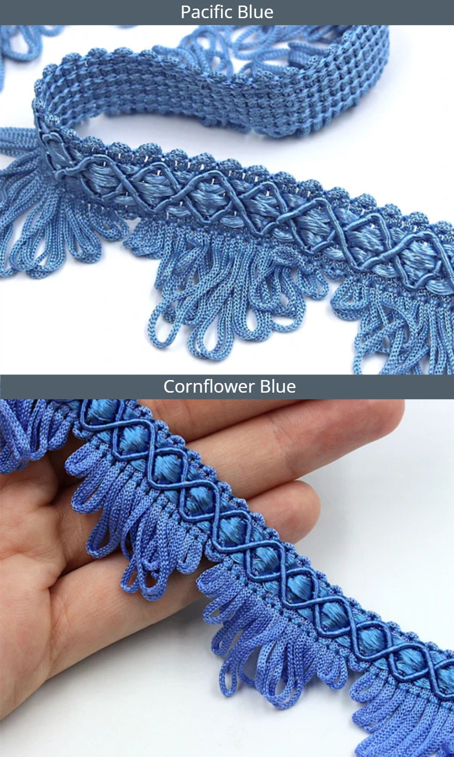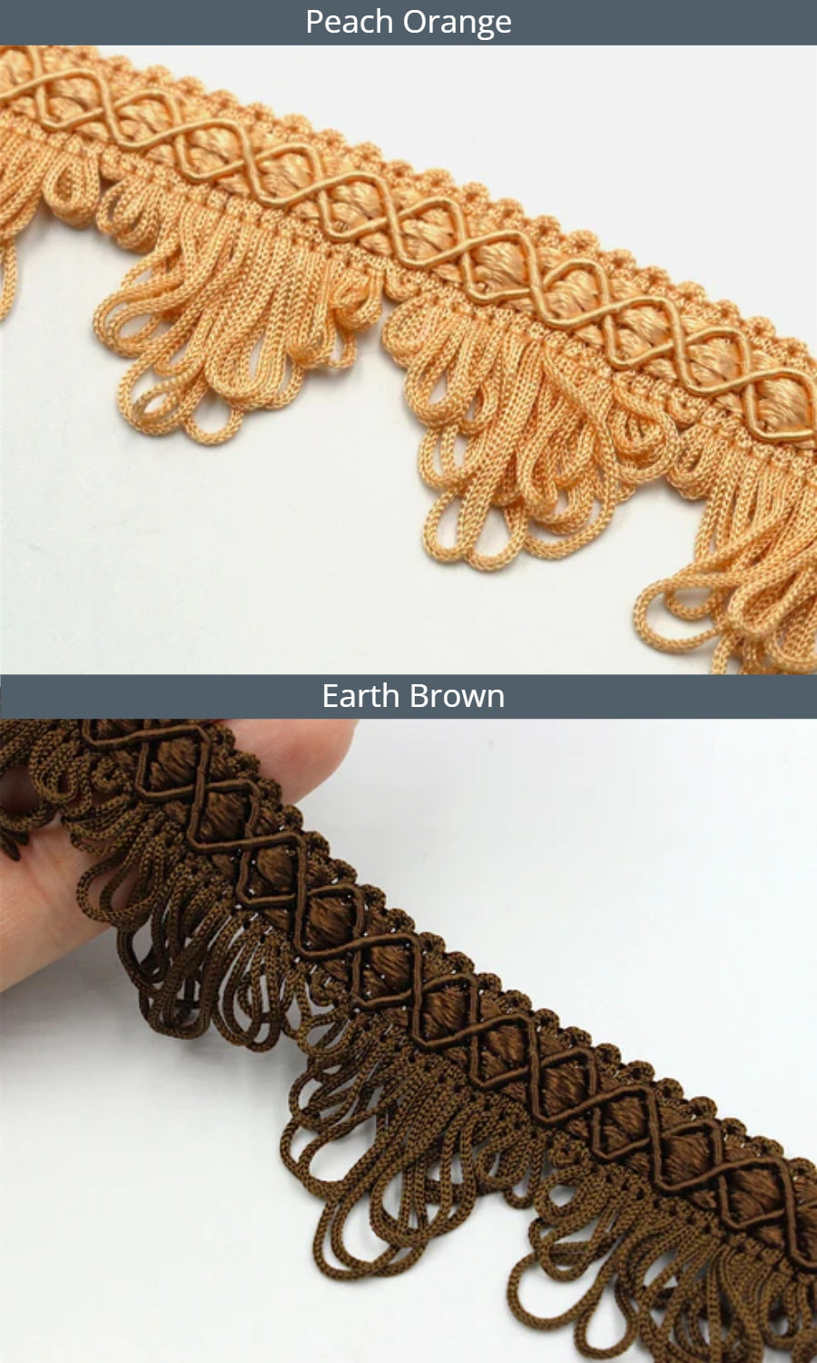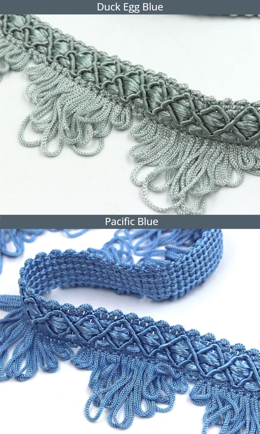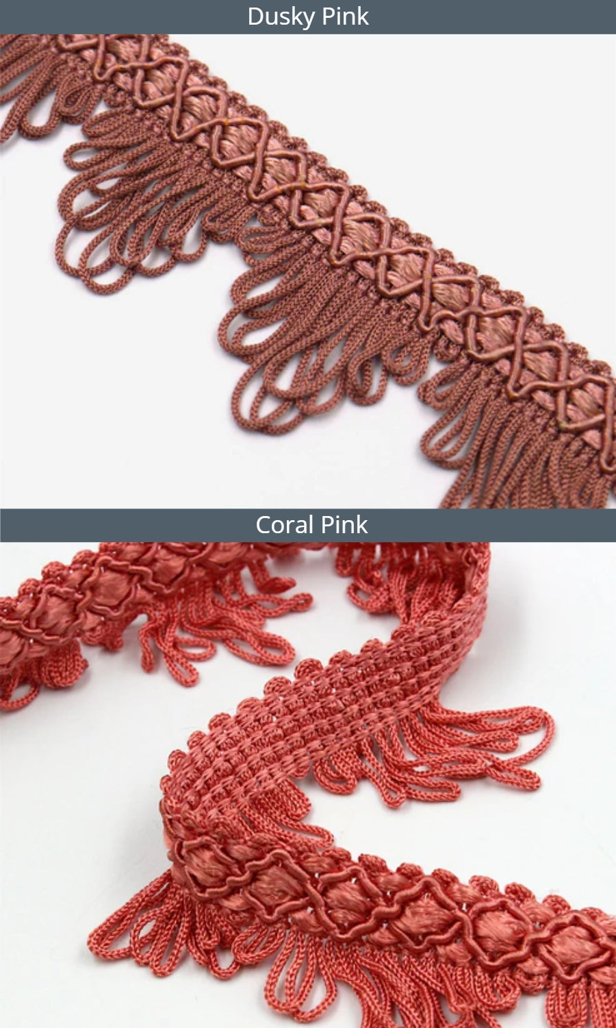 Perfect for both curtains and roman shades, and with 14 colors available, you're bound to find one that suits your style. The loop fringe on these braids is soft, 100% cotton, and the finished trimming width is 40 mms from the edge of the braid.