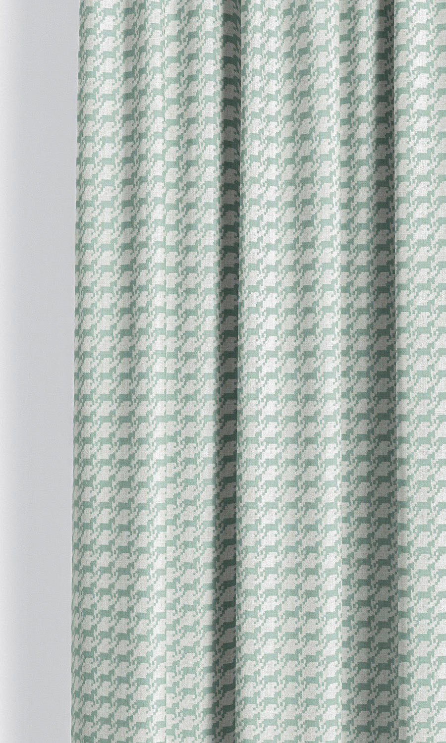 Its seamless micro-sized print that masquerades as houndstooth but reveals a parade of galloping horses at close-up, adding personality with a dash of quirk