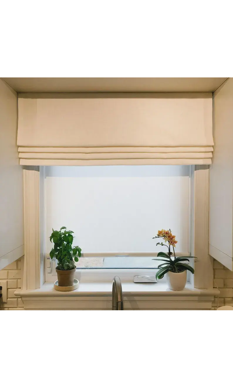 HomeSewn Wisdom: A faux roman shade doesn't fold, so think of it as a static fixture and put special emphasis on length before your order. The minimum length we recommend for a fake roman shade valance is 10 inches. Do consider how much of the window you want to cover, and how much natural light you want to allow through.
