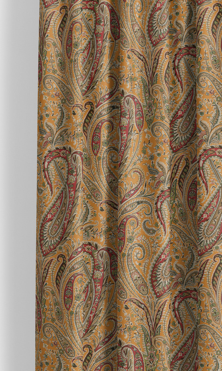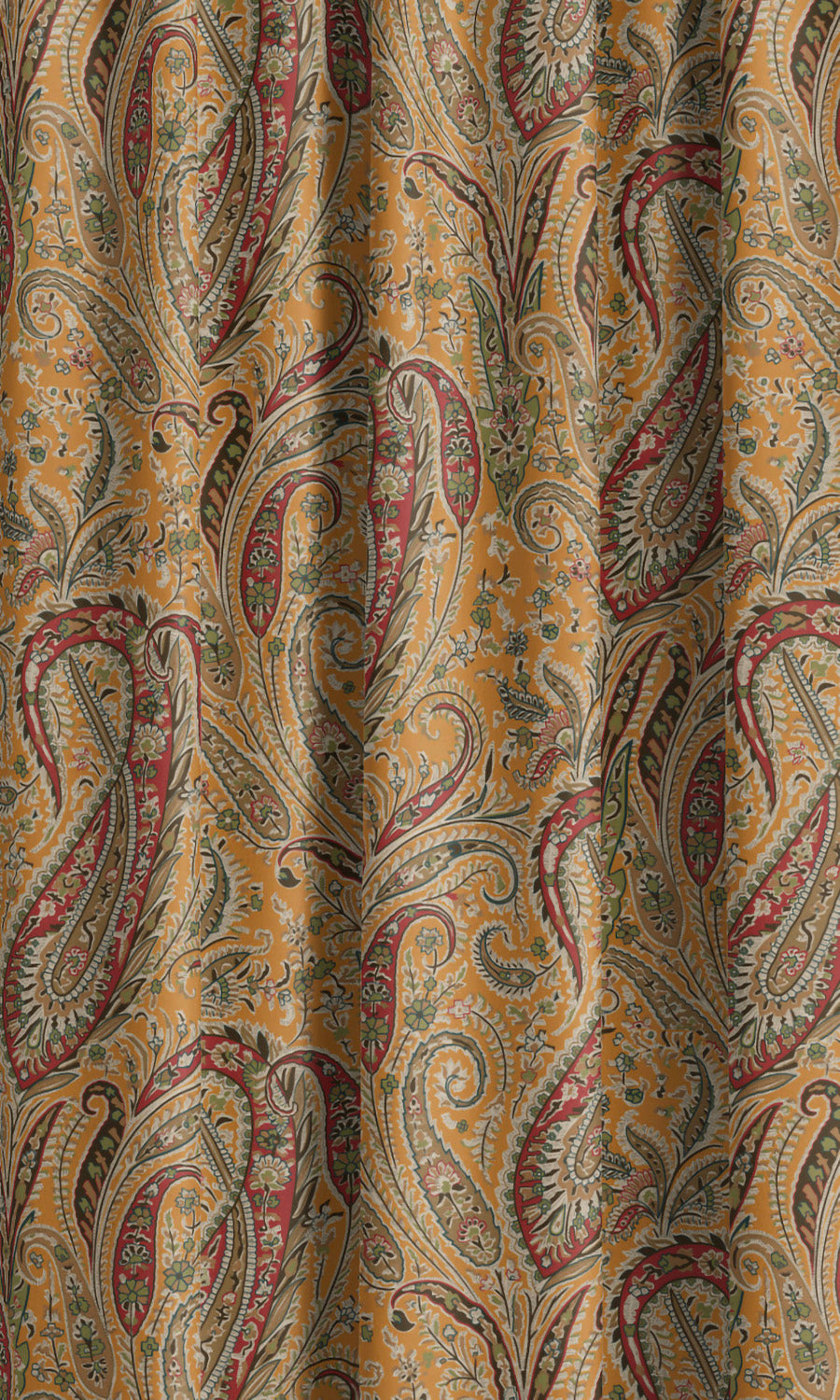 - Pinch & puddle the drapes: Complement the classical elegance of Fireside Splash velvet paisley floral curtains with the tailored headers of pinch pleat styles. Their embellished pleats mirror the gracefully swirling motifs, enhancing their luxurious sheen with movement and depth. Puddle them for an extravagant touch, and finish the look with ornate hardware to elevate the sense of grandeur.
